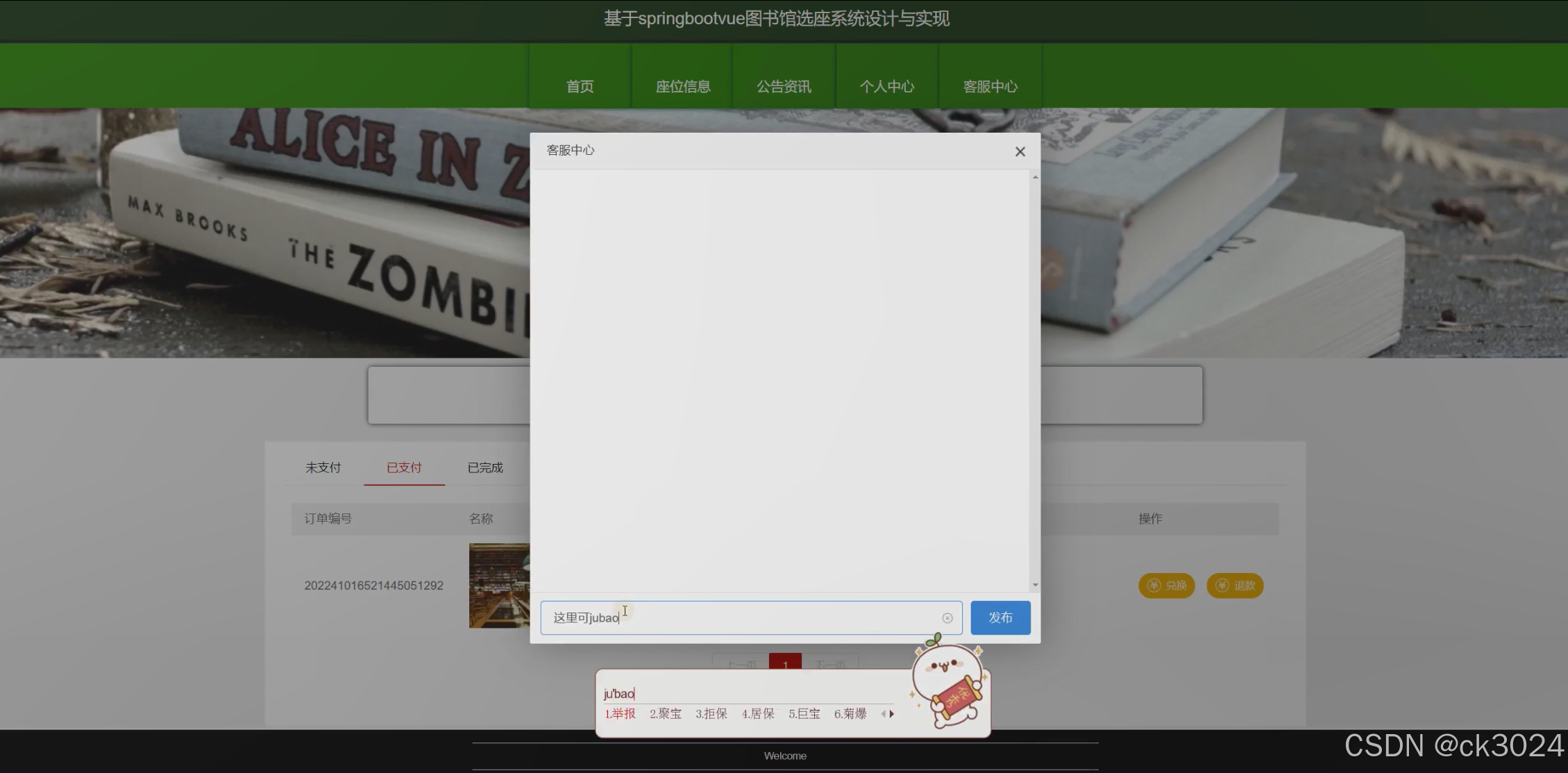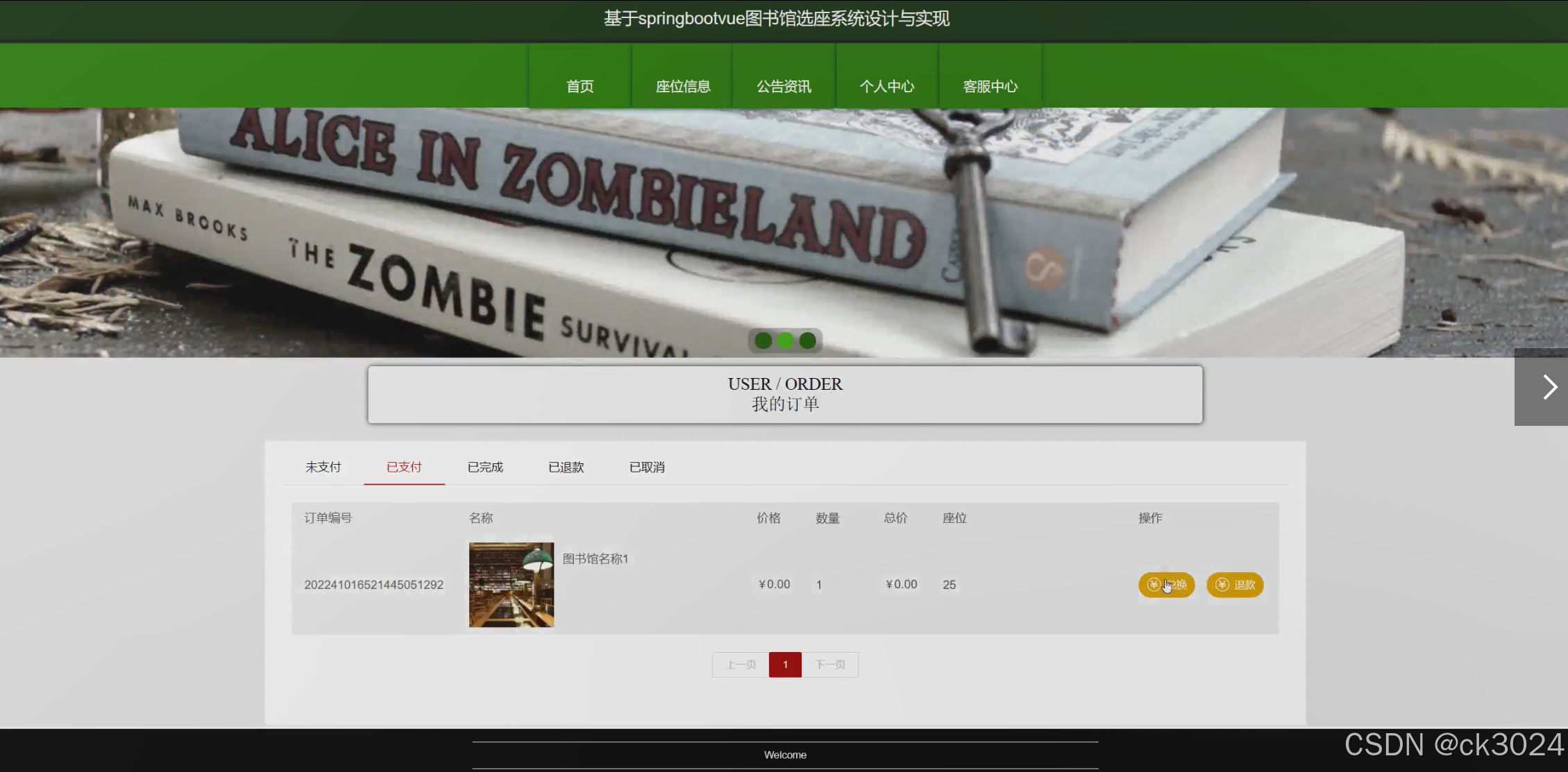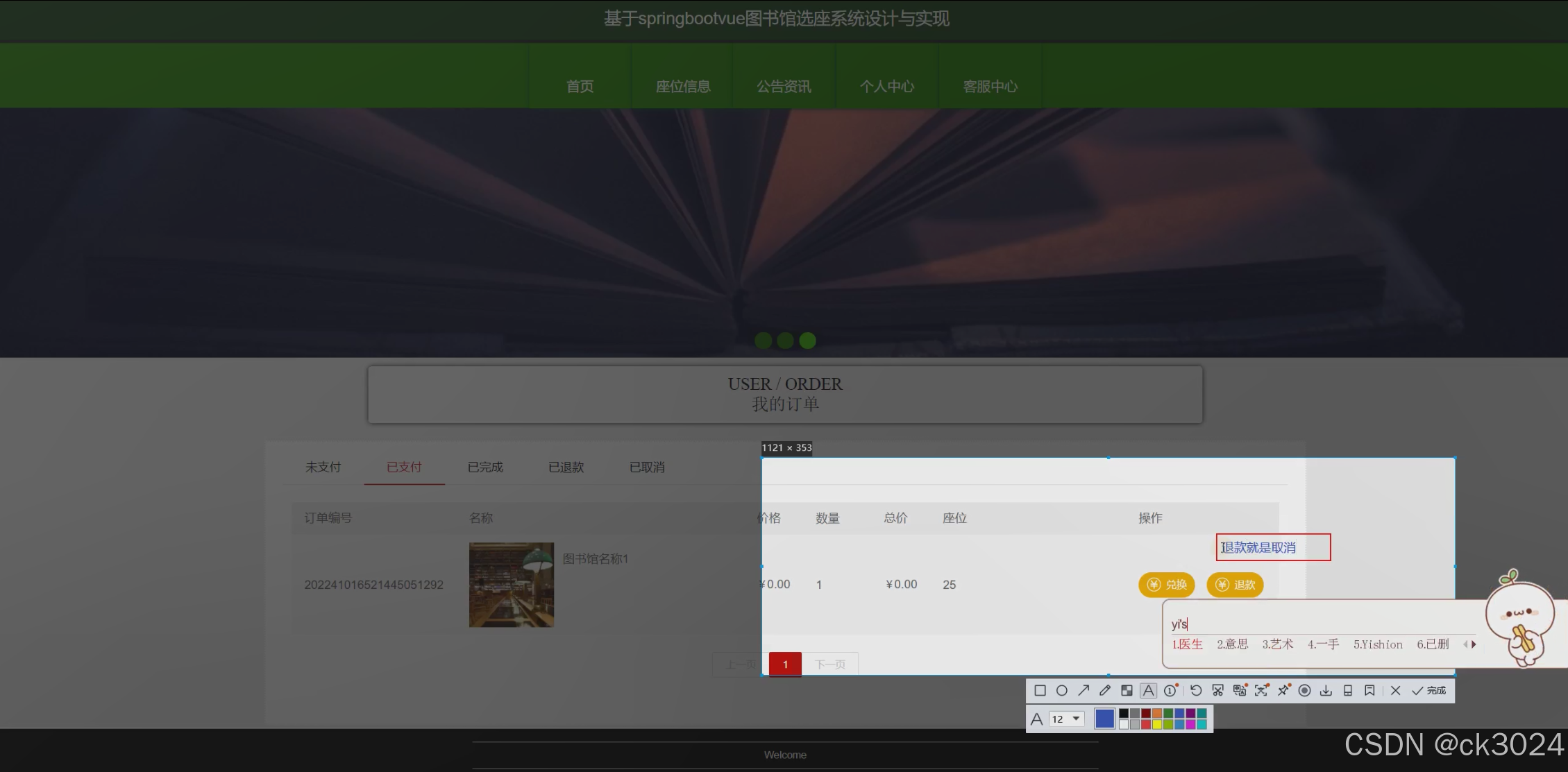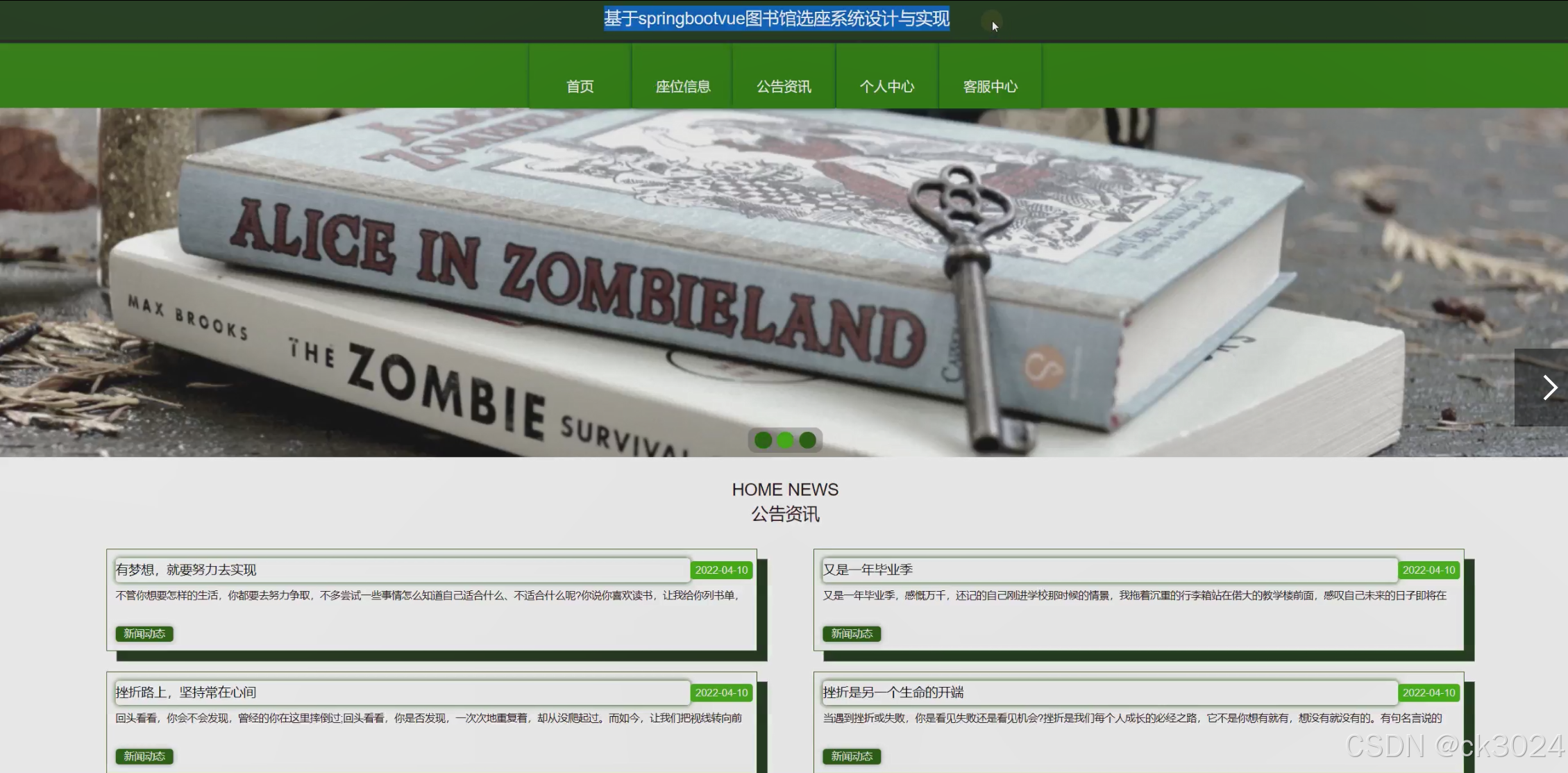 Springboot基于springbootvue图书馆选座系统设计与实现41bpt