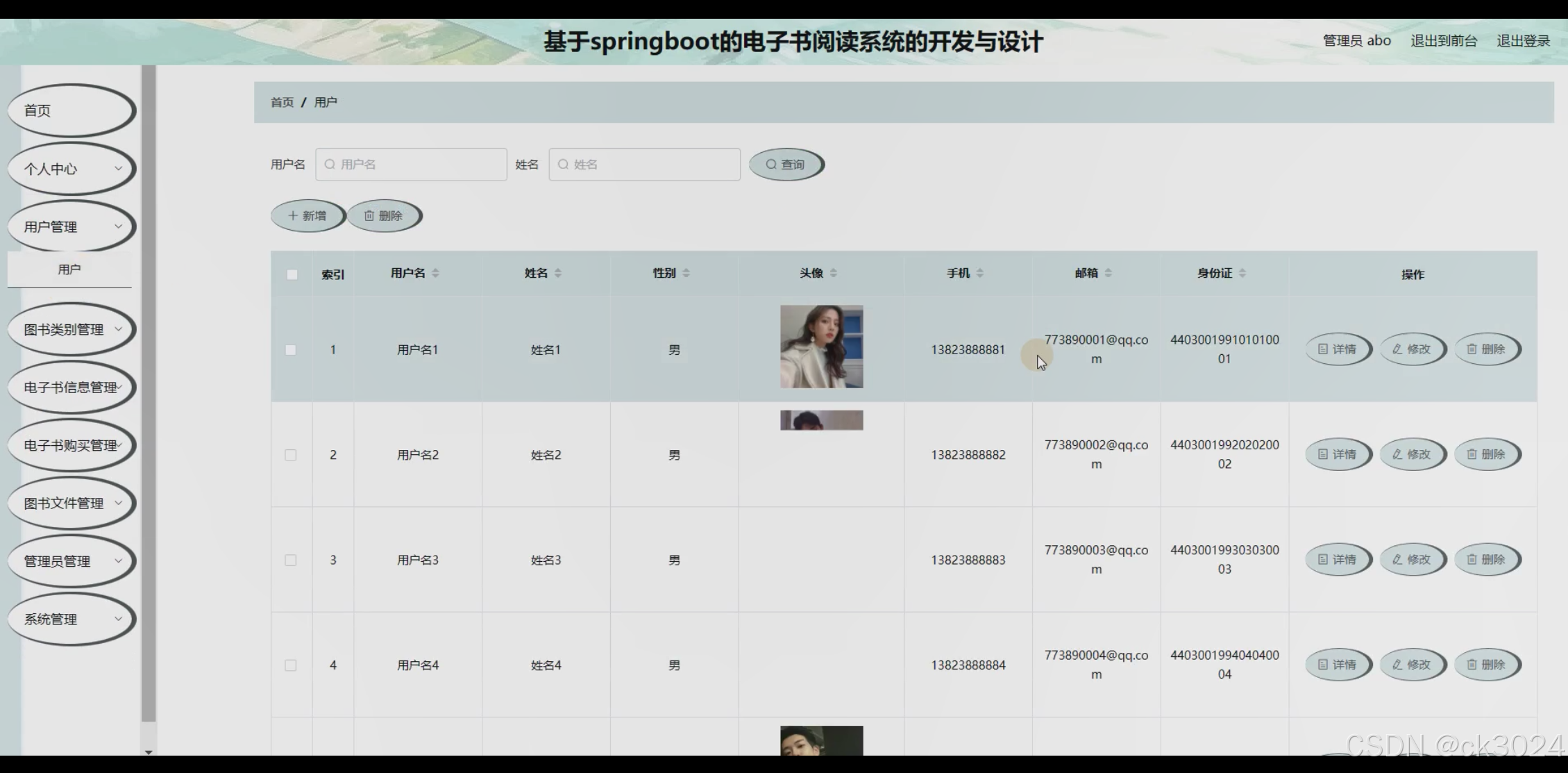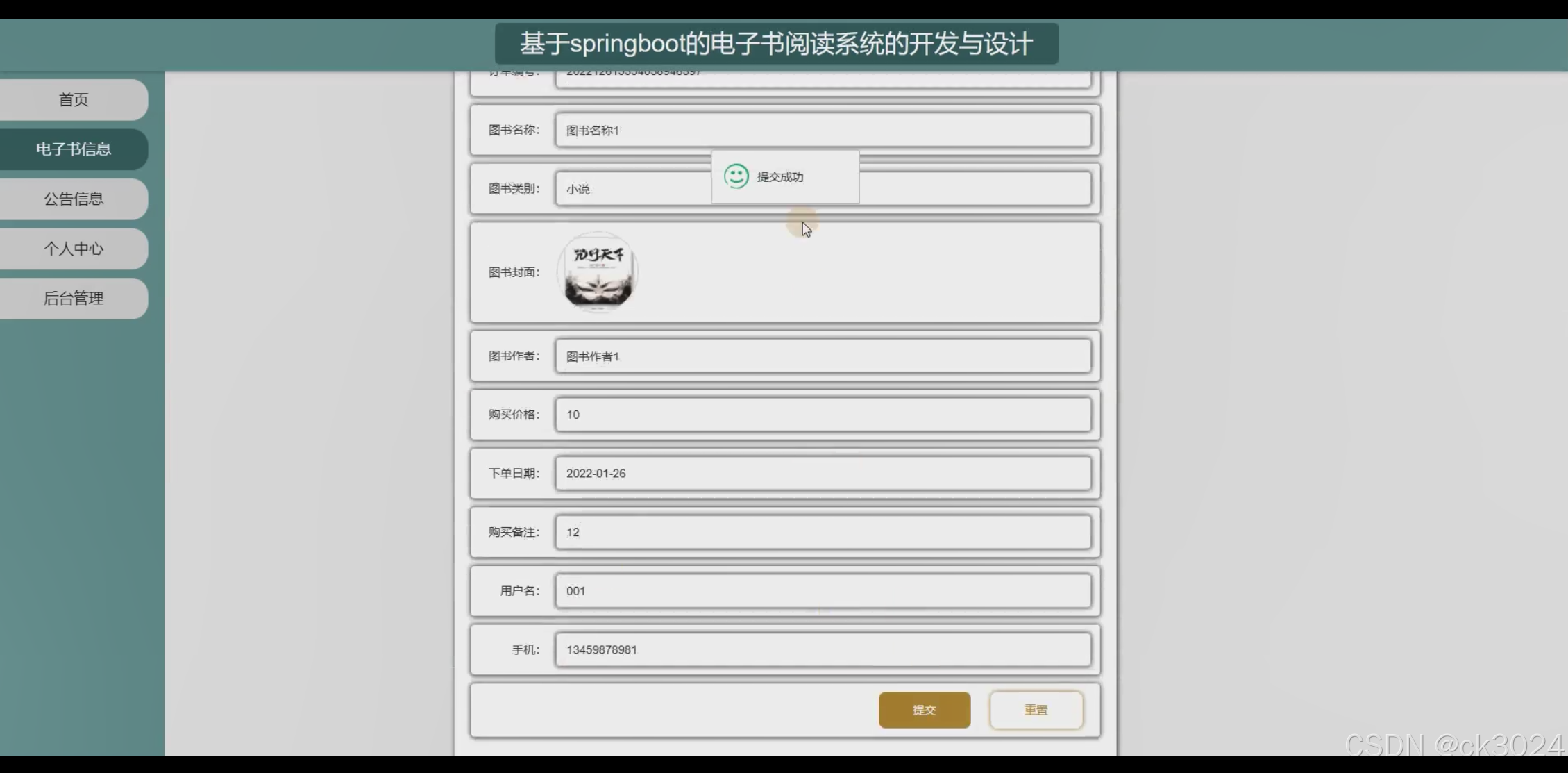 本项目旨在运用 Springboot 框架构建一套完善的电子书阅读系统。为用户打造一体化电子书阅读服务平台。用户通过系统可轻松注册登录,便捷查询图书类别与电子书信息。图书类别模块按多种维度细致划分,如文学类按年代分为古代文学、近现代文学,按流派分为现实主义、浪漫主义等,按题材分为言情、武侠、科幻等,方便用户精准筛选。电子书信息模块详细展示每本电子书的书名、作者、封面图片、内容简介、目录、评分、读者评论、出版信息等,为用户提供全面了解书籍的途径。用户可在线试读部分内容,若决定购买,系统支持多种支付方式,如微信支付、支付宝支付等,购买流程简洁明了,即时生成购买记录。用户购买后可将电子书下载至本地设备,系统自动适配图书文件格式,确保在不同设备(电脑、平板、手机)上均可流畅阅读。系统实现用户管理、图书类别管理、电子书信息管理、电子书购买管理、图书文件管理、阅读记录管理、用户反馈管理等全流程信息化管理,显著提升电子书阅读系统的运行效率与用户体验。