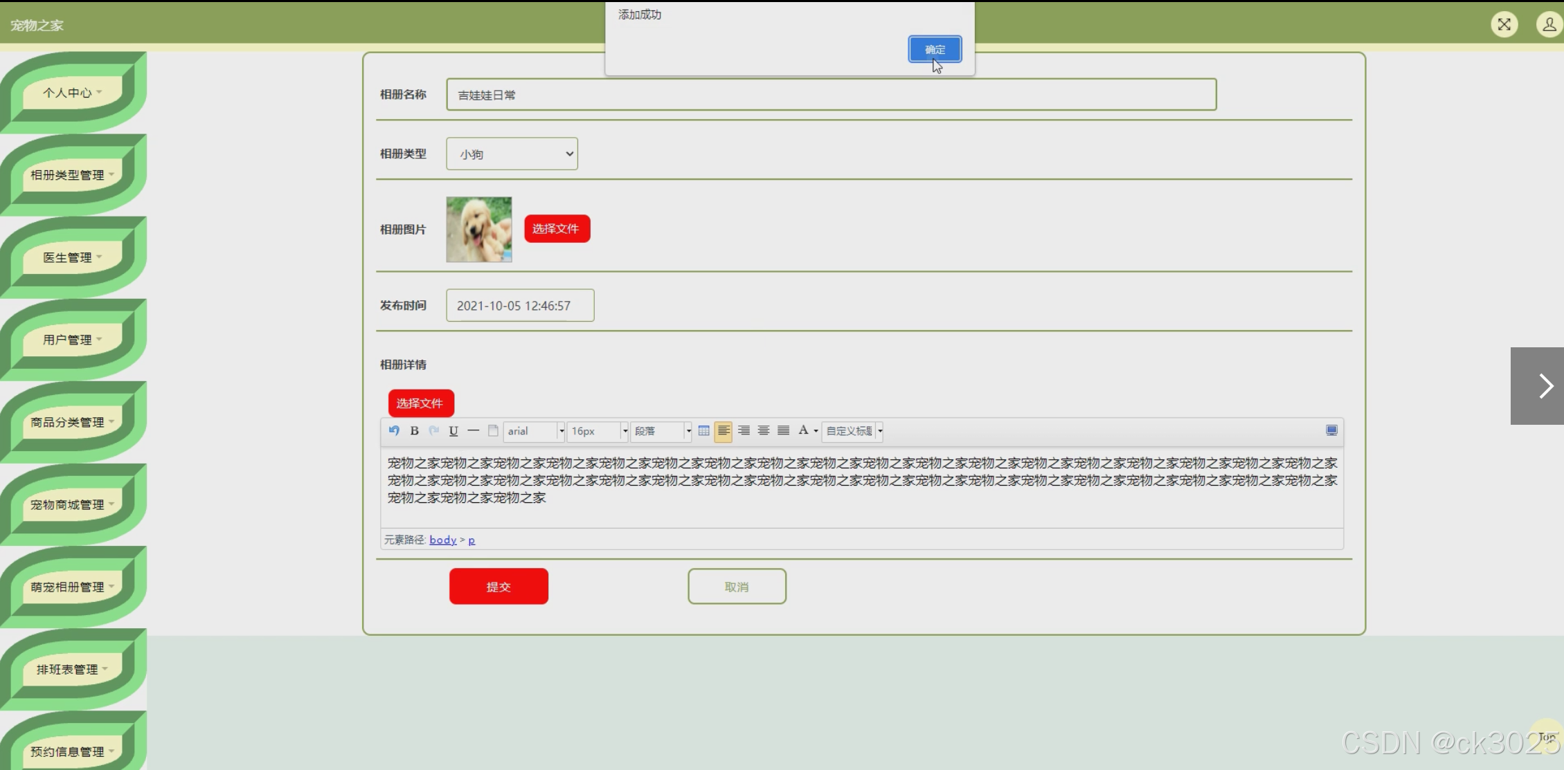 萌宠相册是宠物主人分享宠物生活点滴的重要平台。系统支持用户上传宠物照片和视频,并可根据相册类型(如成长记录、日常趣事、旅行足迹等)进行分类管理。相册的公开或私密设置功能,确保用户分享的自由与安全。