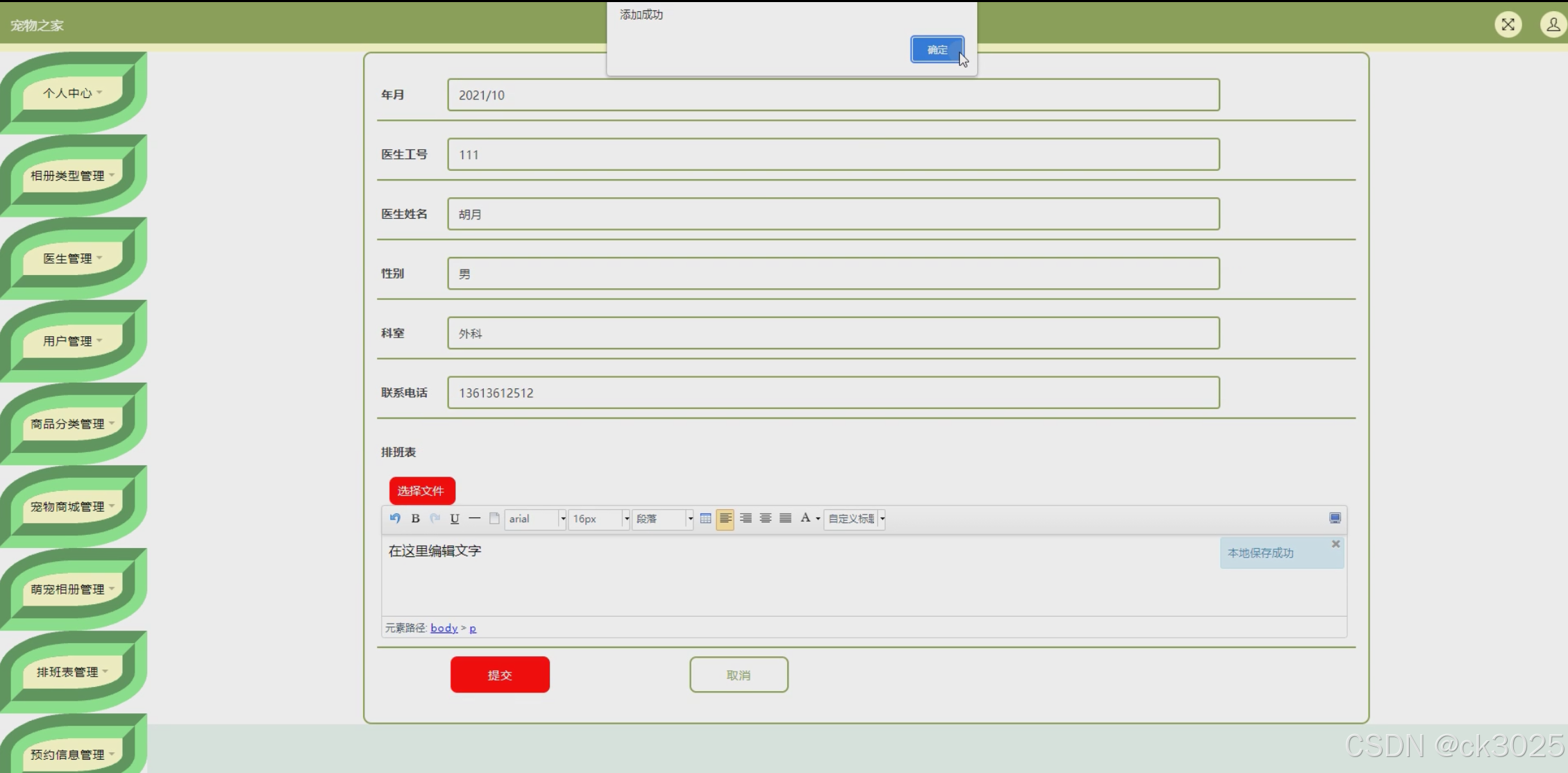 宠物健康是宠物主人最为关心的问题之一。系统将引入宠物医生资源,为用户提供在线咨询服务。同时,排班表功能将展示医生的排班信息,方便用户预约就诊时间。通过医生与用户的互动,提升宠物健康管理水平。