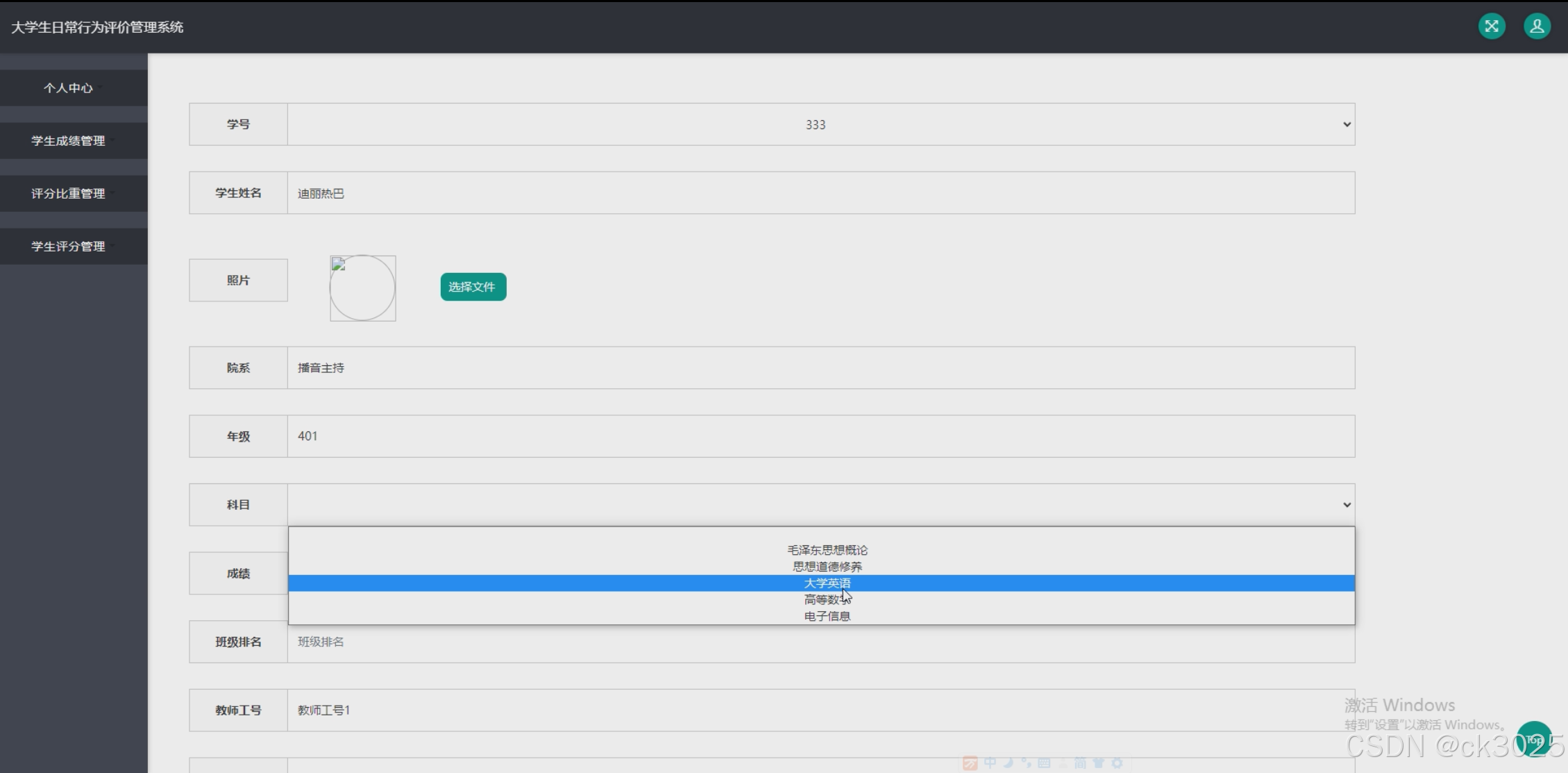 评价数据录入模块:支持教师在线录入学生的评价数据,包括课堂表现、作业完成情况等。