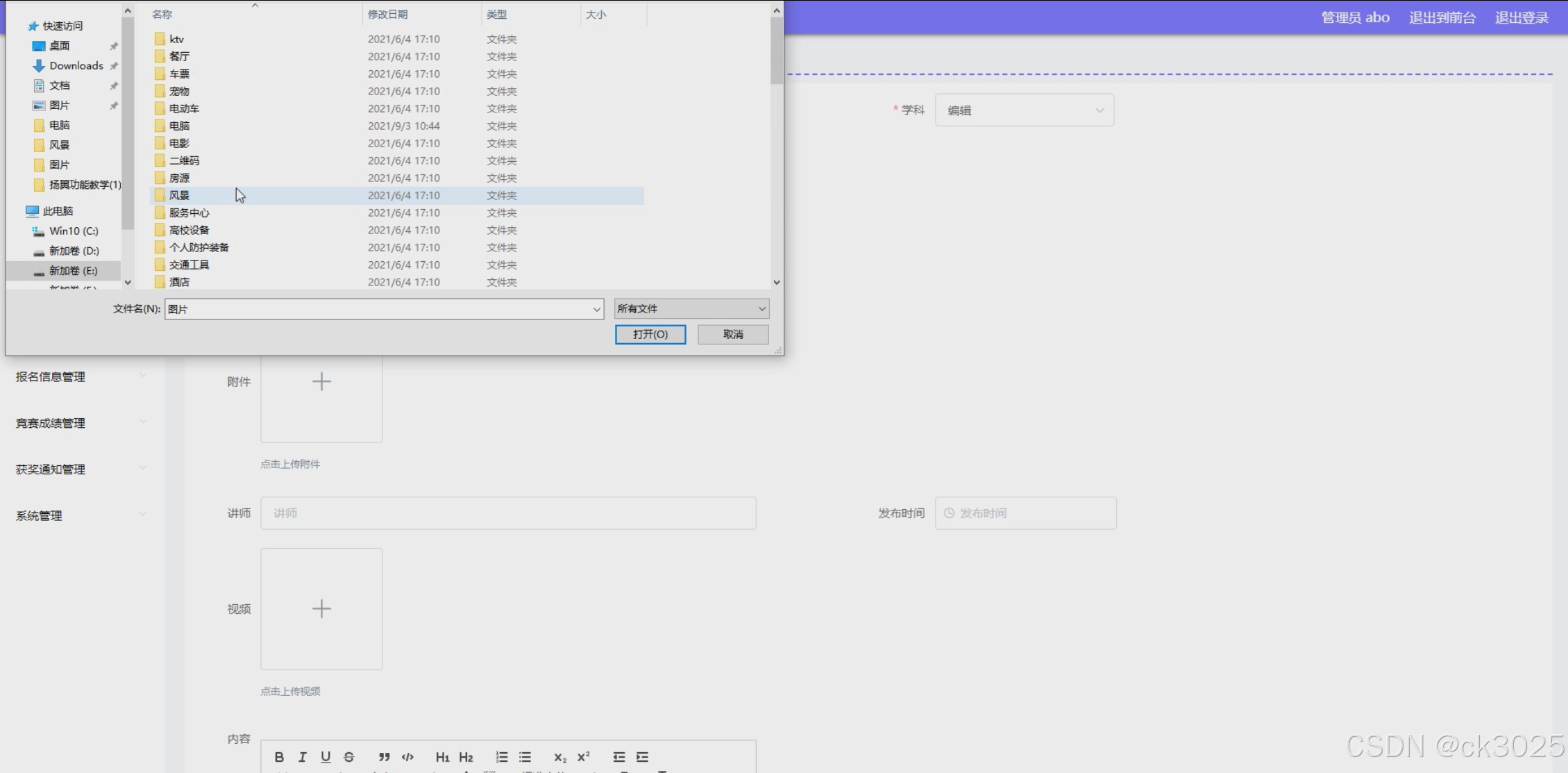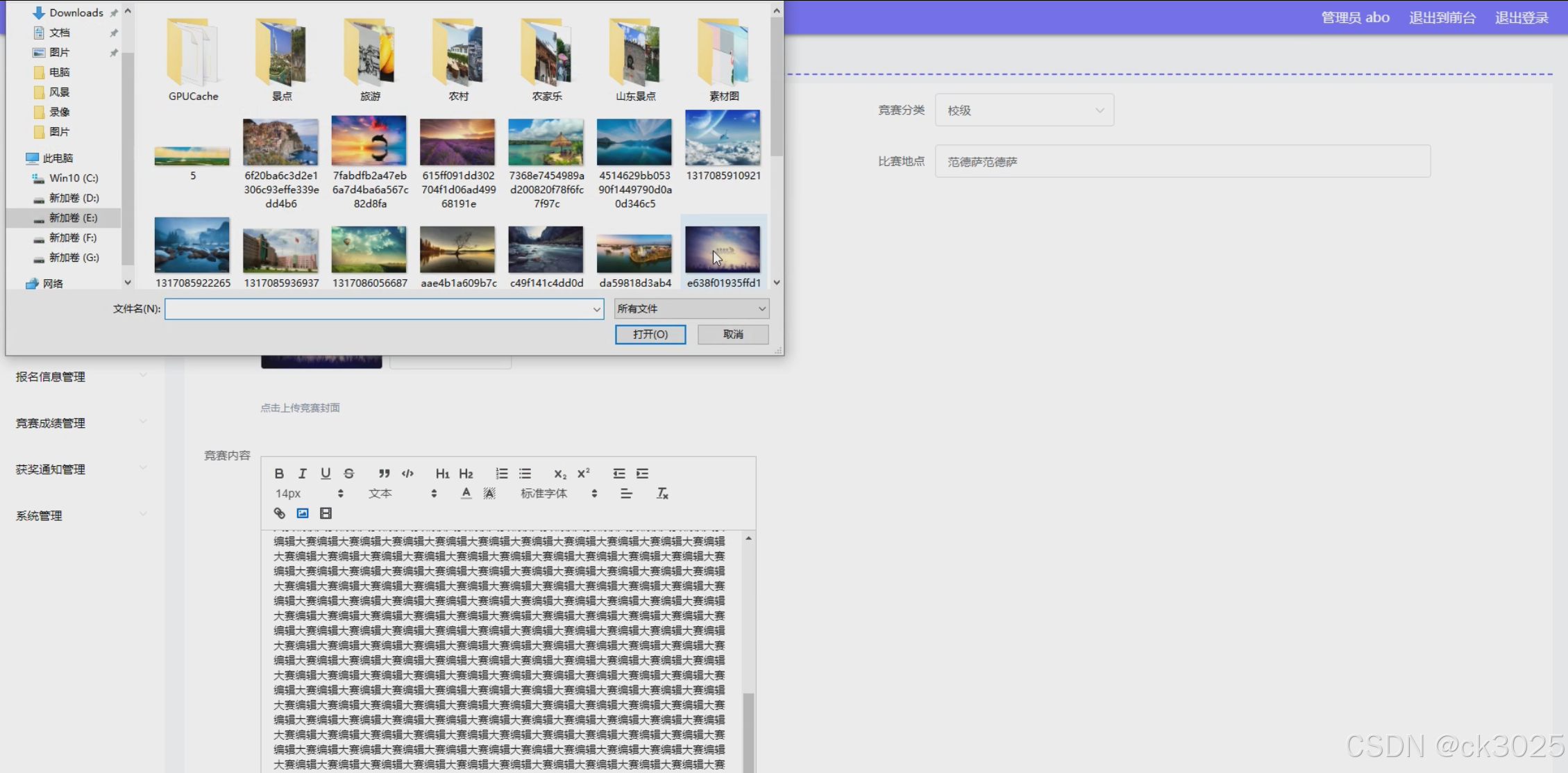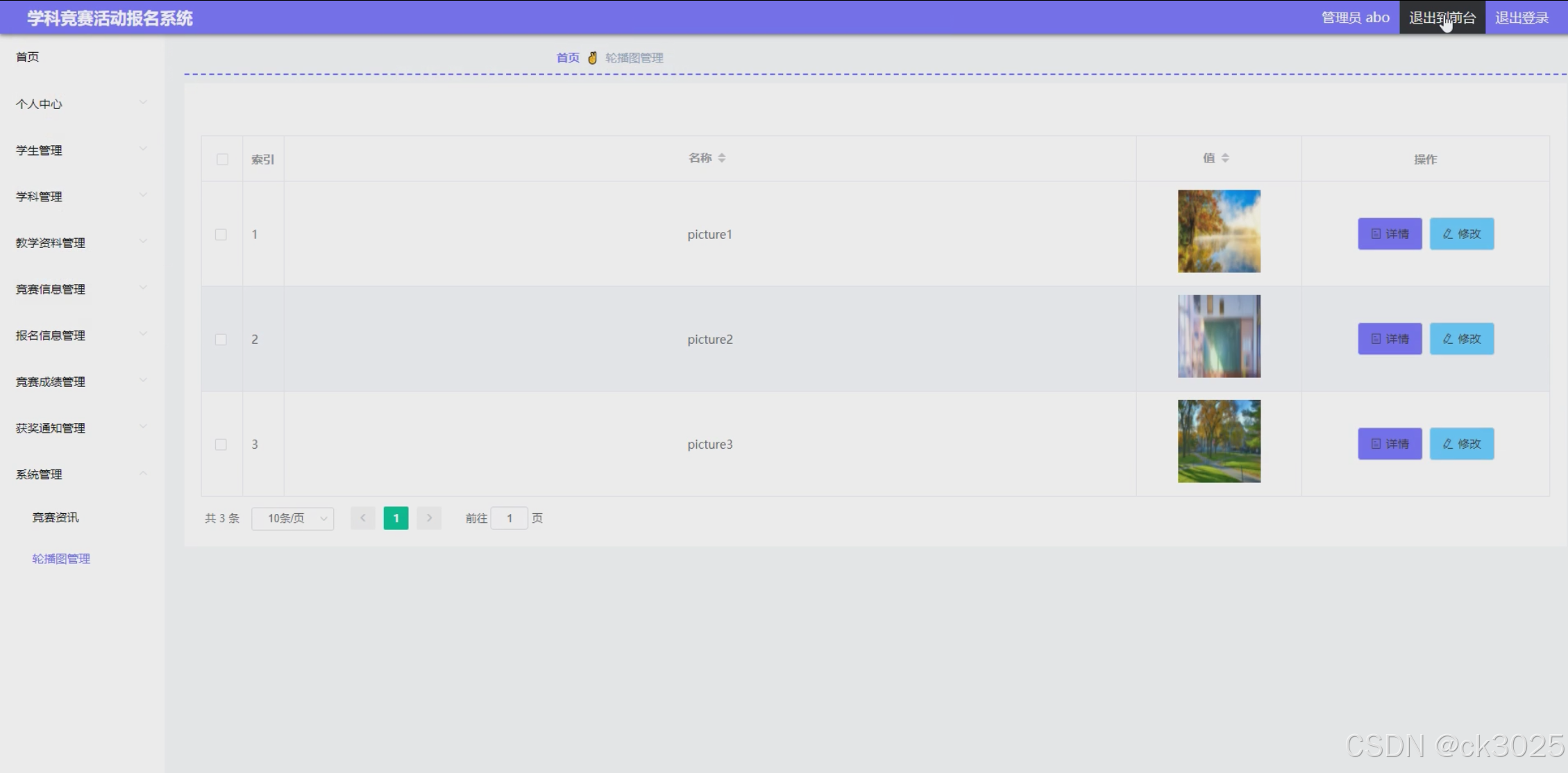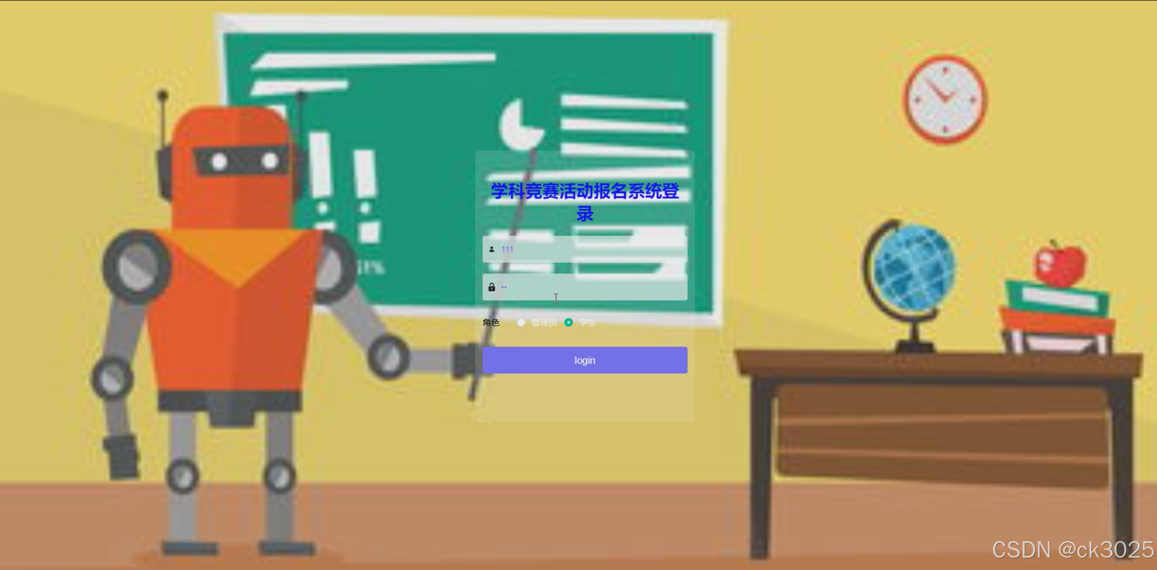 本系统旨在为学生、教师及管理人员提供一个便捷、高效、全面的竞赛活动报名平台。主要功能包括学生信息管理、学科资料查阅、竞赛信息发布、在线报名、竞赛成绩及获奖信息公示等,旨在提升竞赛活动的参与度、透明度与公正性。