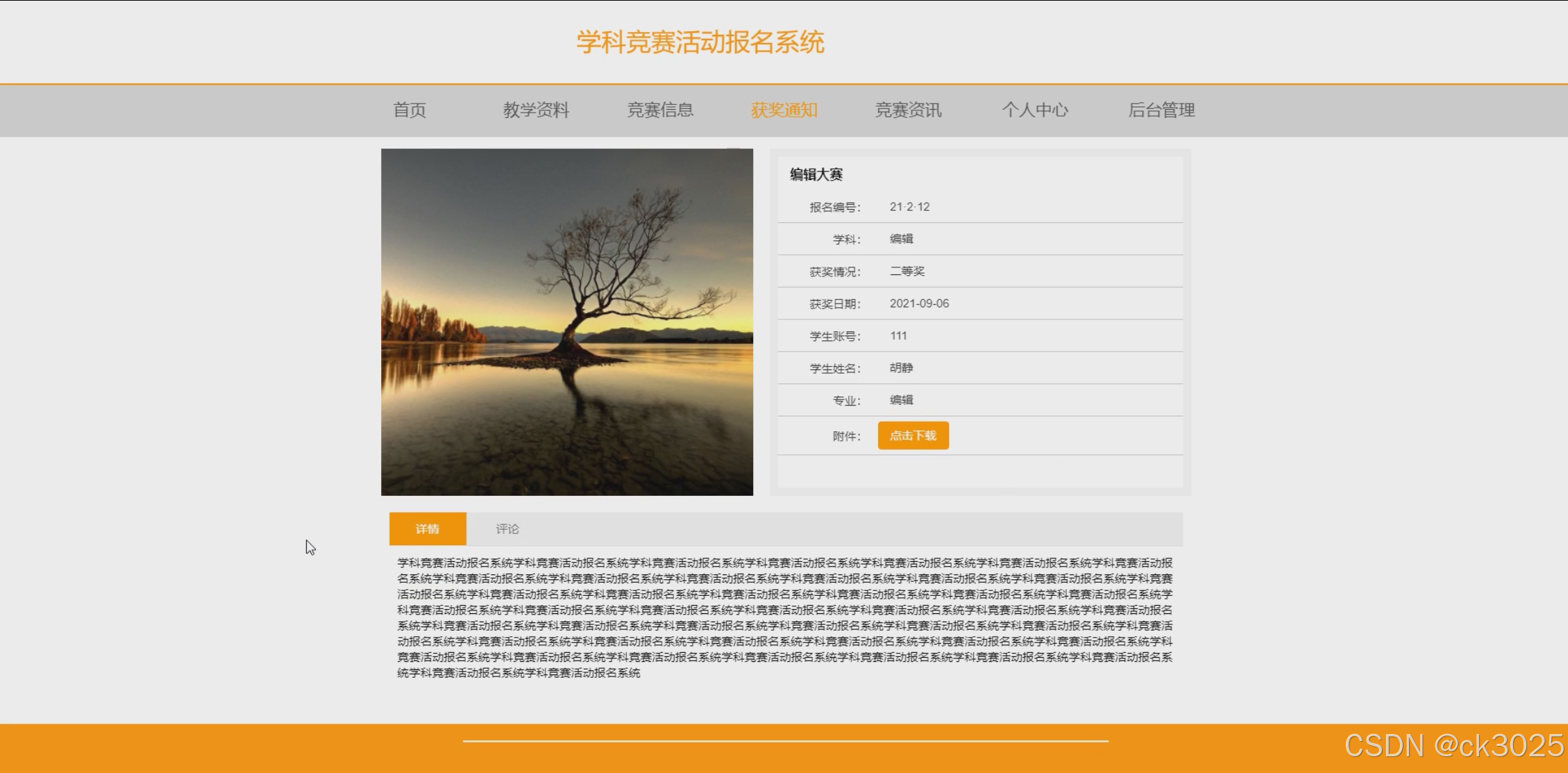 - 竞赛成绩与获奖信息查看:学生可查询自己的竞赛成绩及获奖情况。