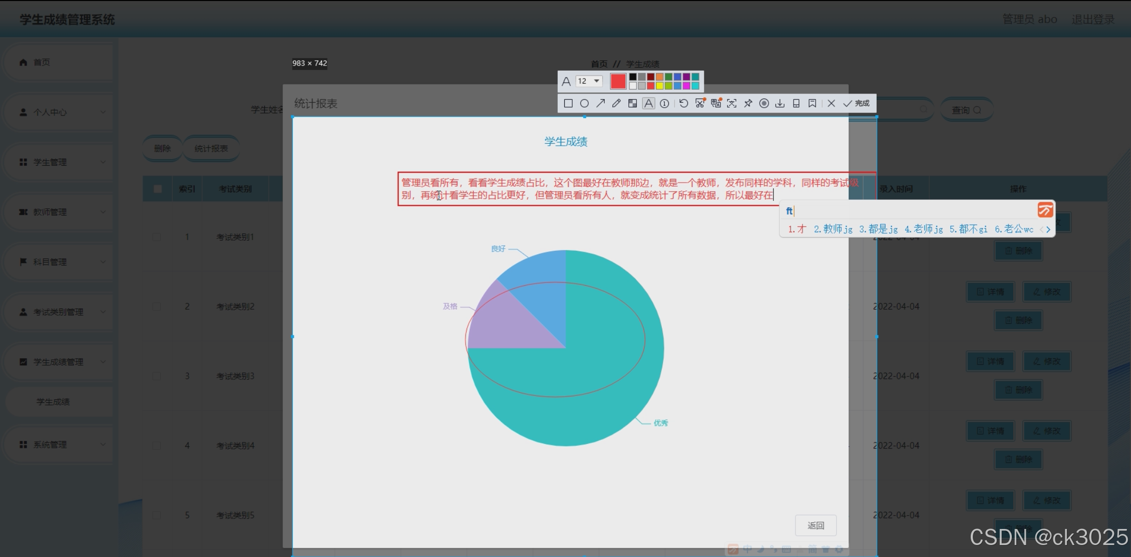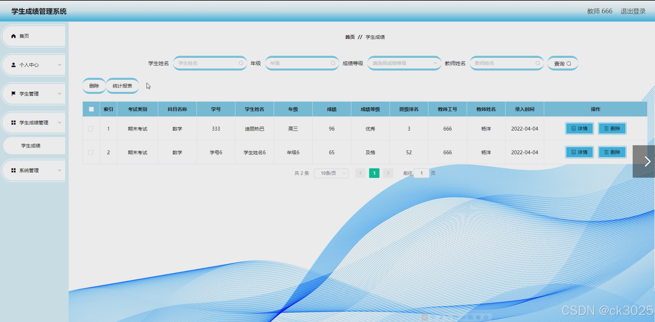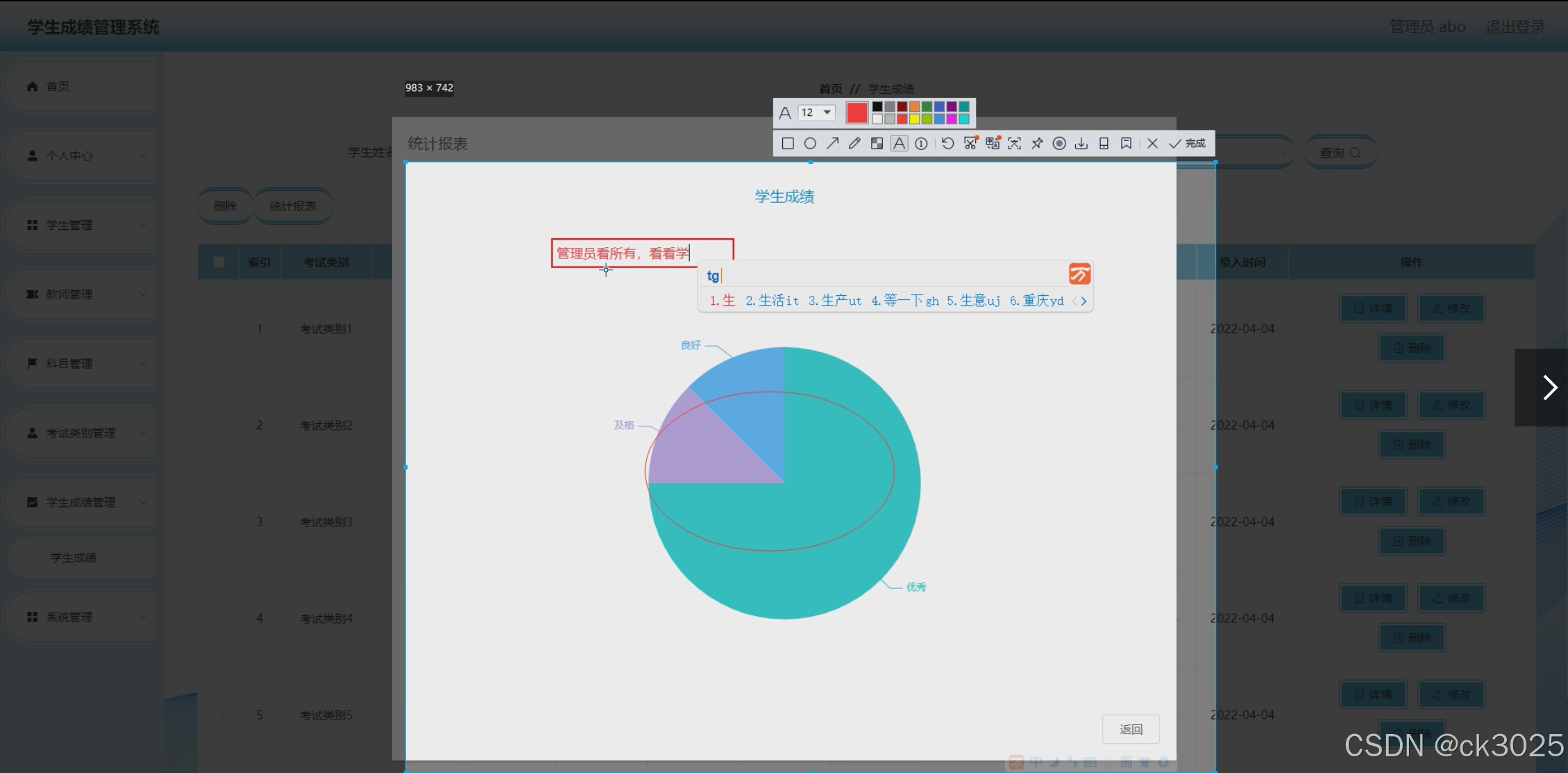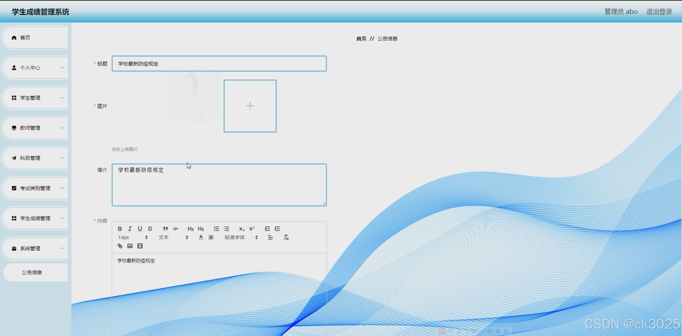 本系统旨在构建一个功能全面、操作简便、安全可靠的学生成绩管理平台,涵盖学生信息管理、教师信息管理、科目与课程管理、考试类别设置、学生成绩录入与查询、班级信息管理等功能模块。通过该系统,能够实现对成绩的快速录入、精准查询、智能分析,为教学管理提供有力支持。