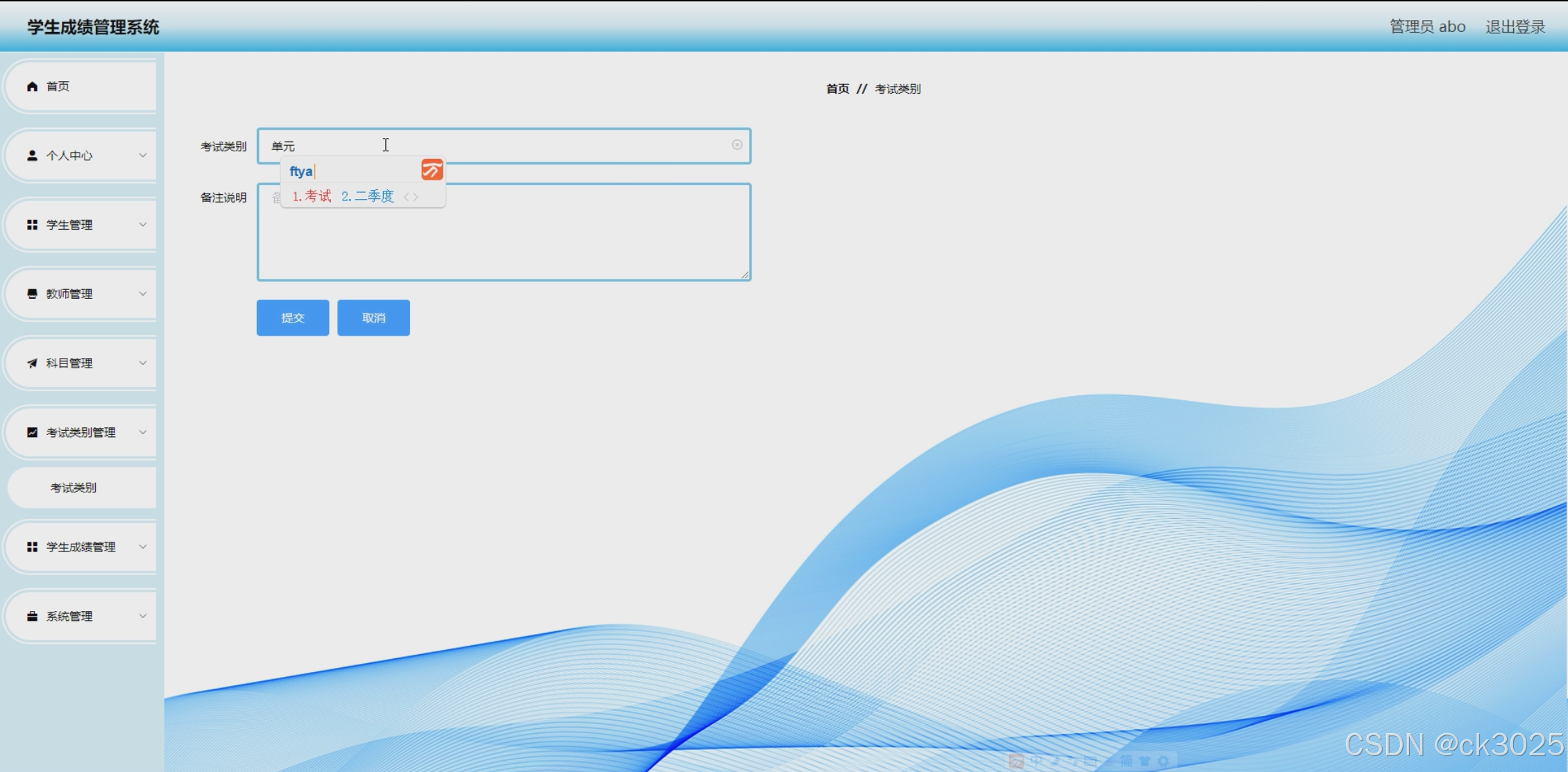 - 考试类别设置:教师可设置不同课程的考试类型,如期中考试、期末考试、平时成绩等。