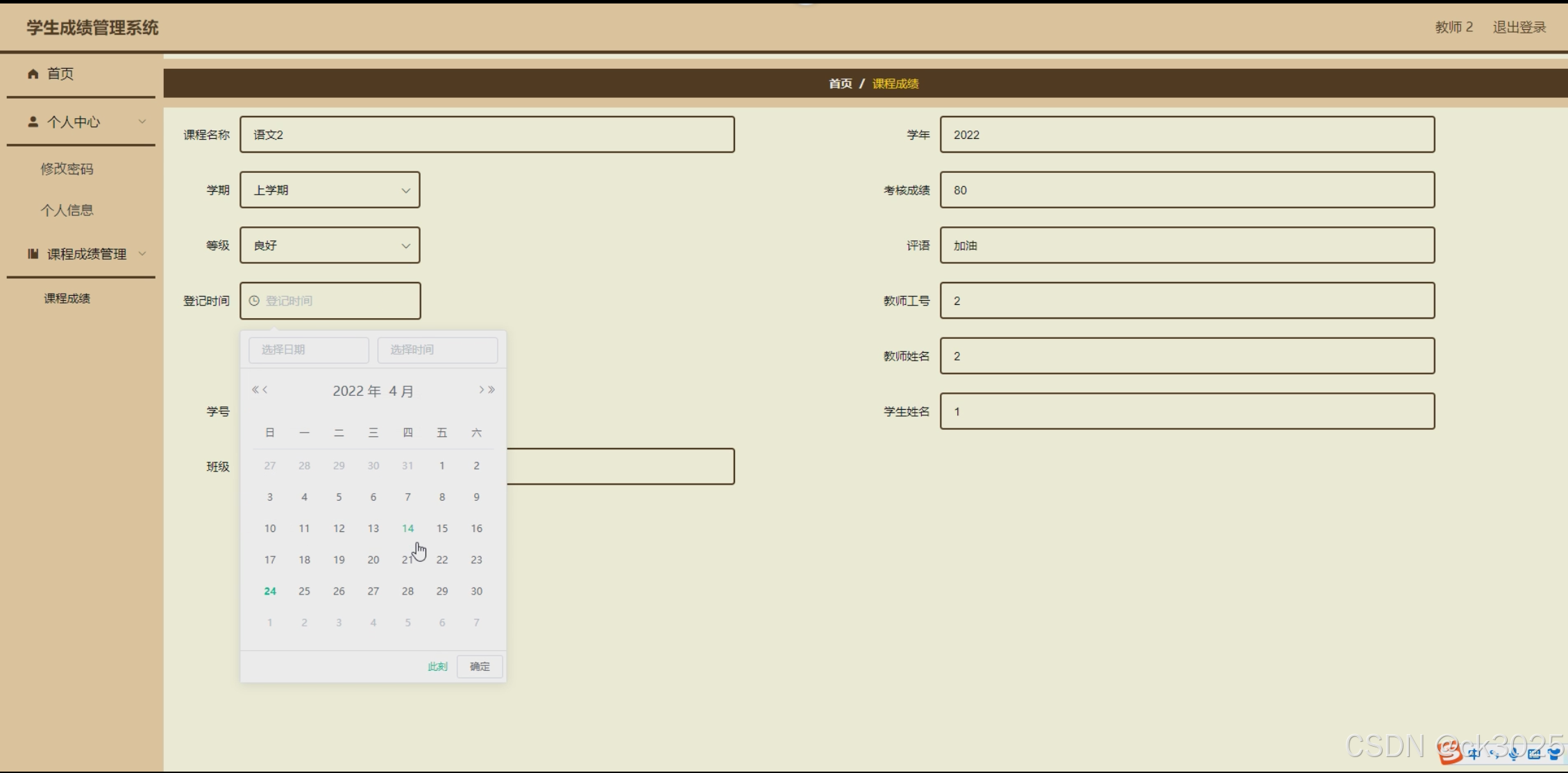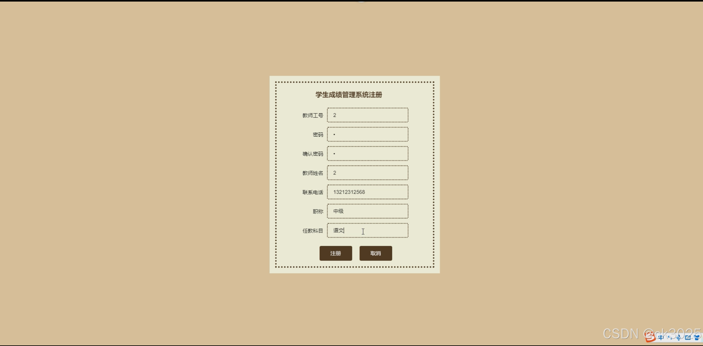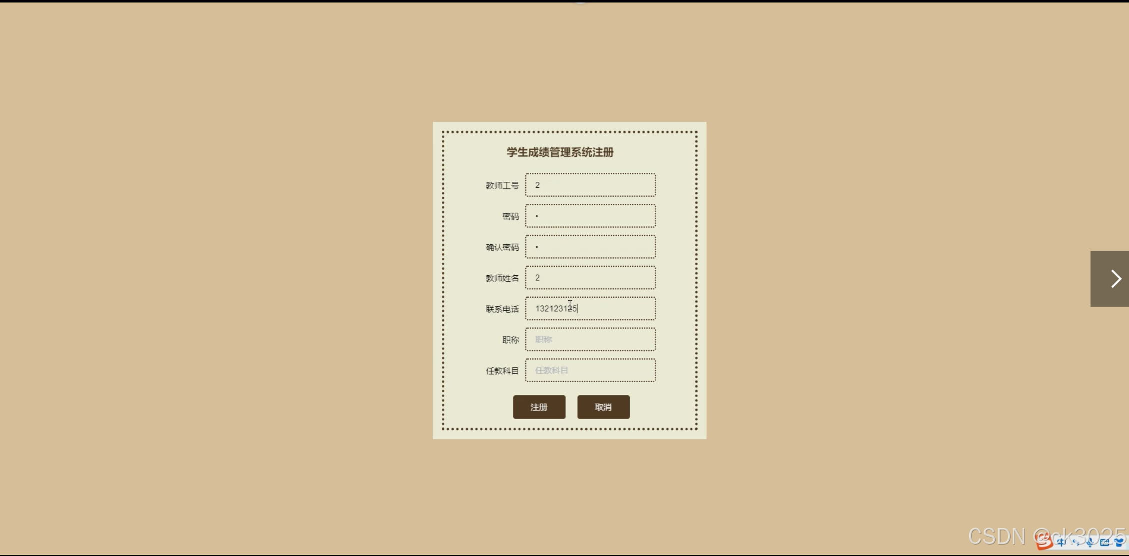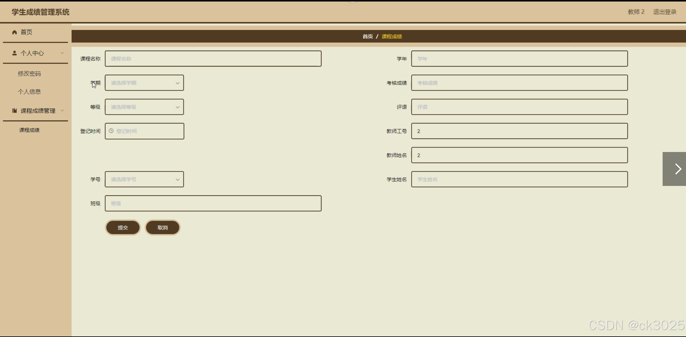 - 教师信息管理:允许教师注册、登录,完善个人信息,包括姓名、工号、任教科目等。