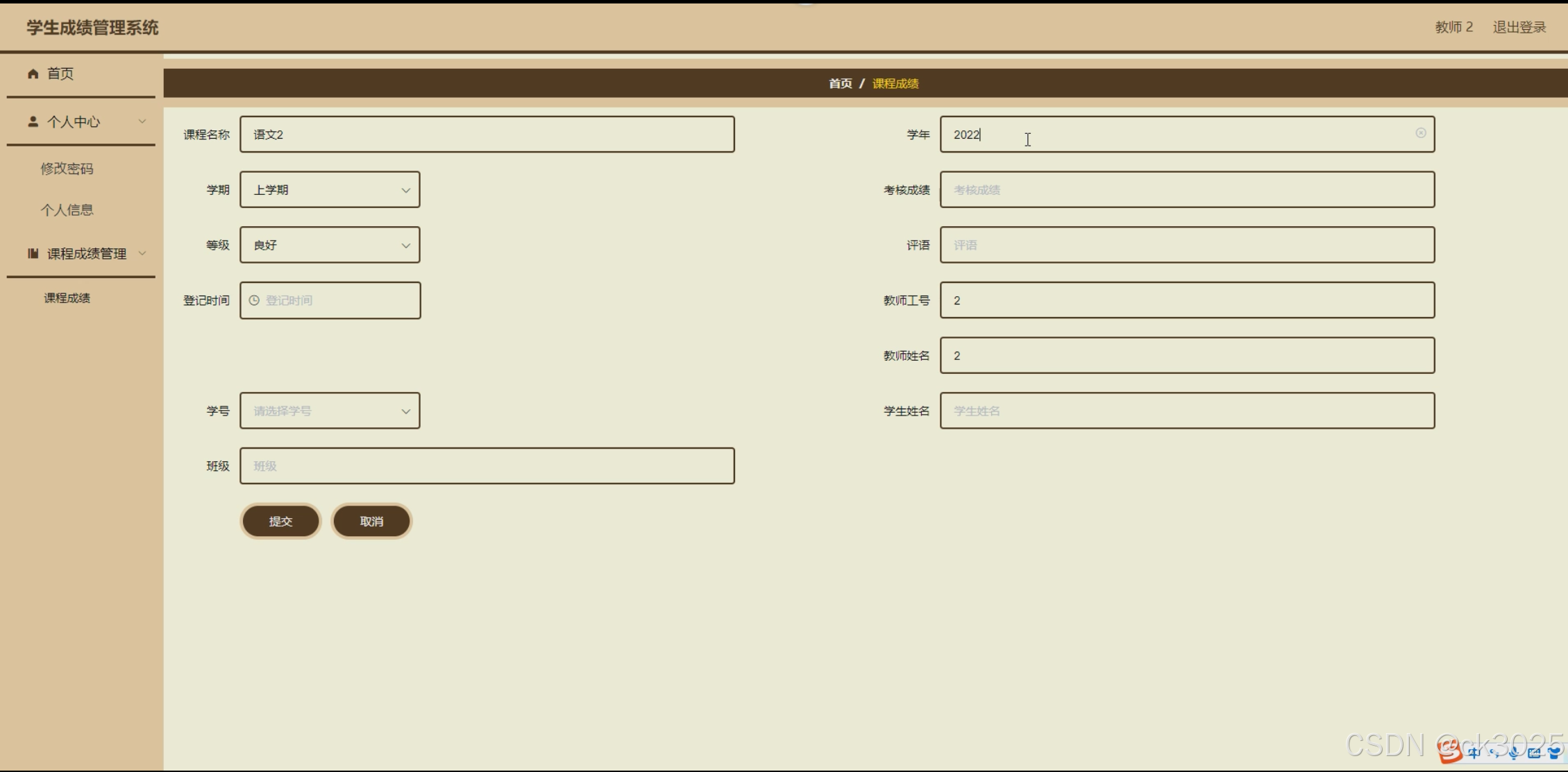 - 课程成绩录入:教师可录入所授课程的考试成绩,系统支持批量导入与手动录入两种方式。