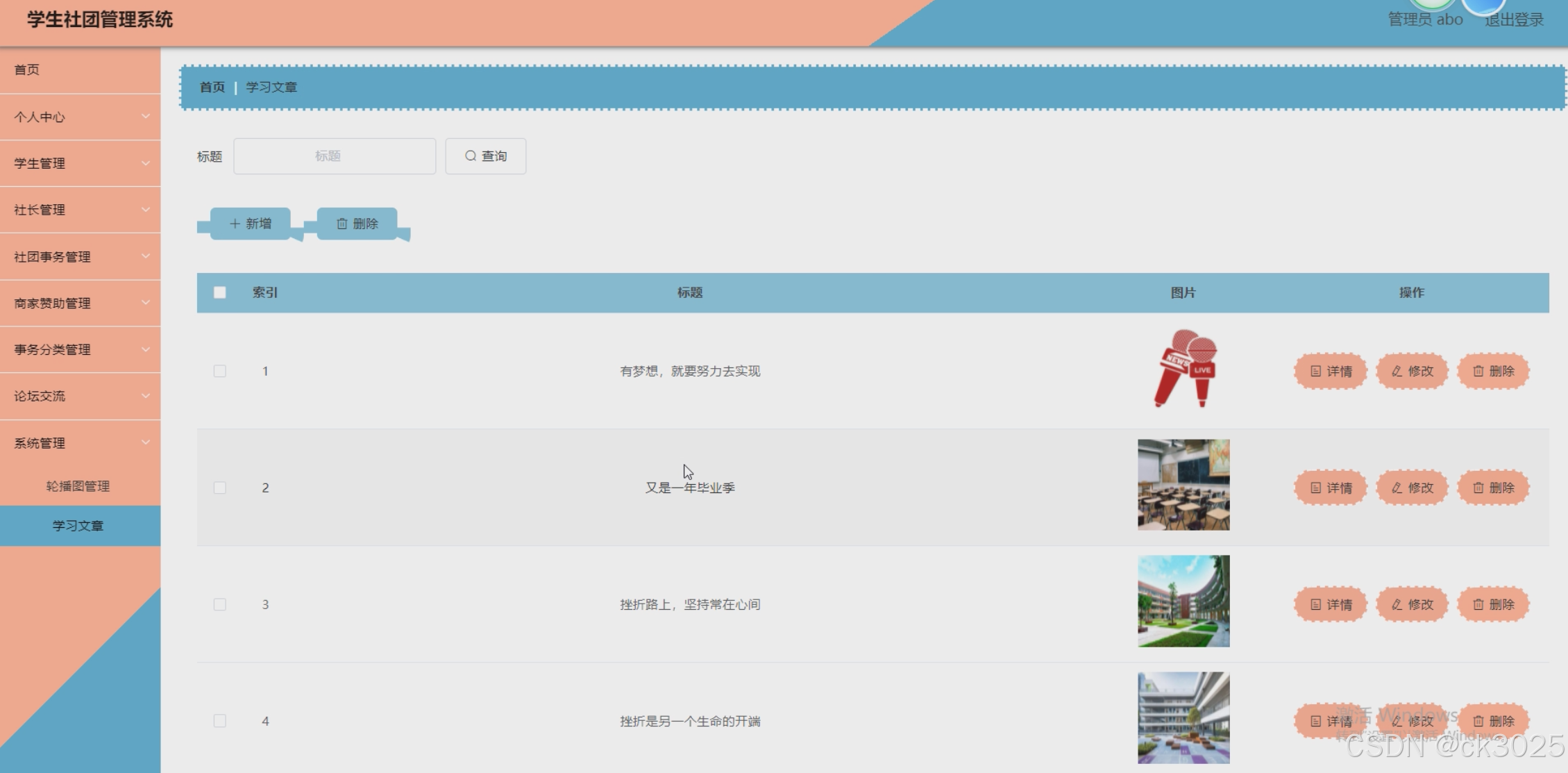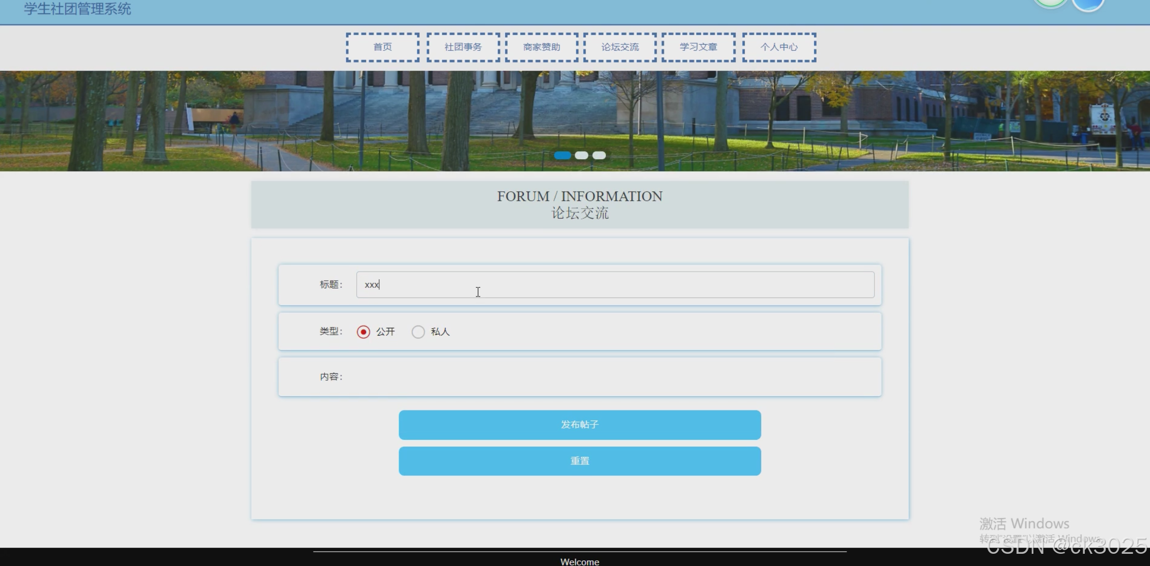 - 开发出一套功能全面、操作简便、性能稳定的学生社团管理系统。