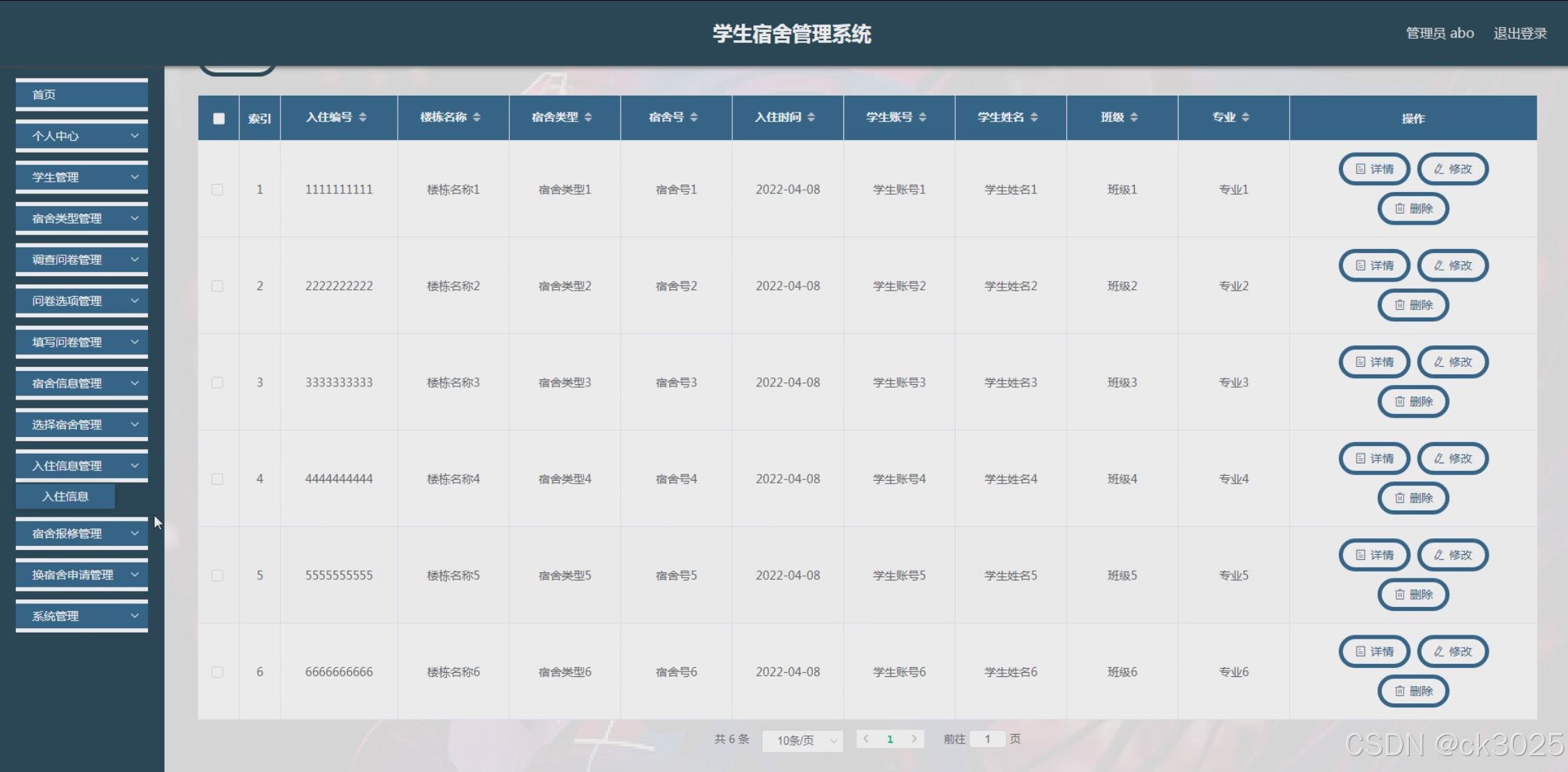 - 学生信息管理:记录学生的基本信息,包括学号、姓名、专业、班级等,便于宿舍分配与查询。