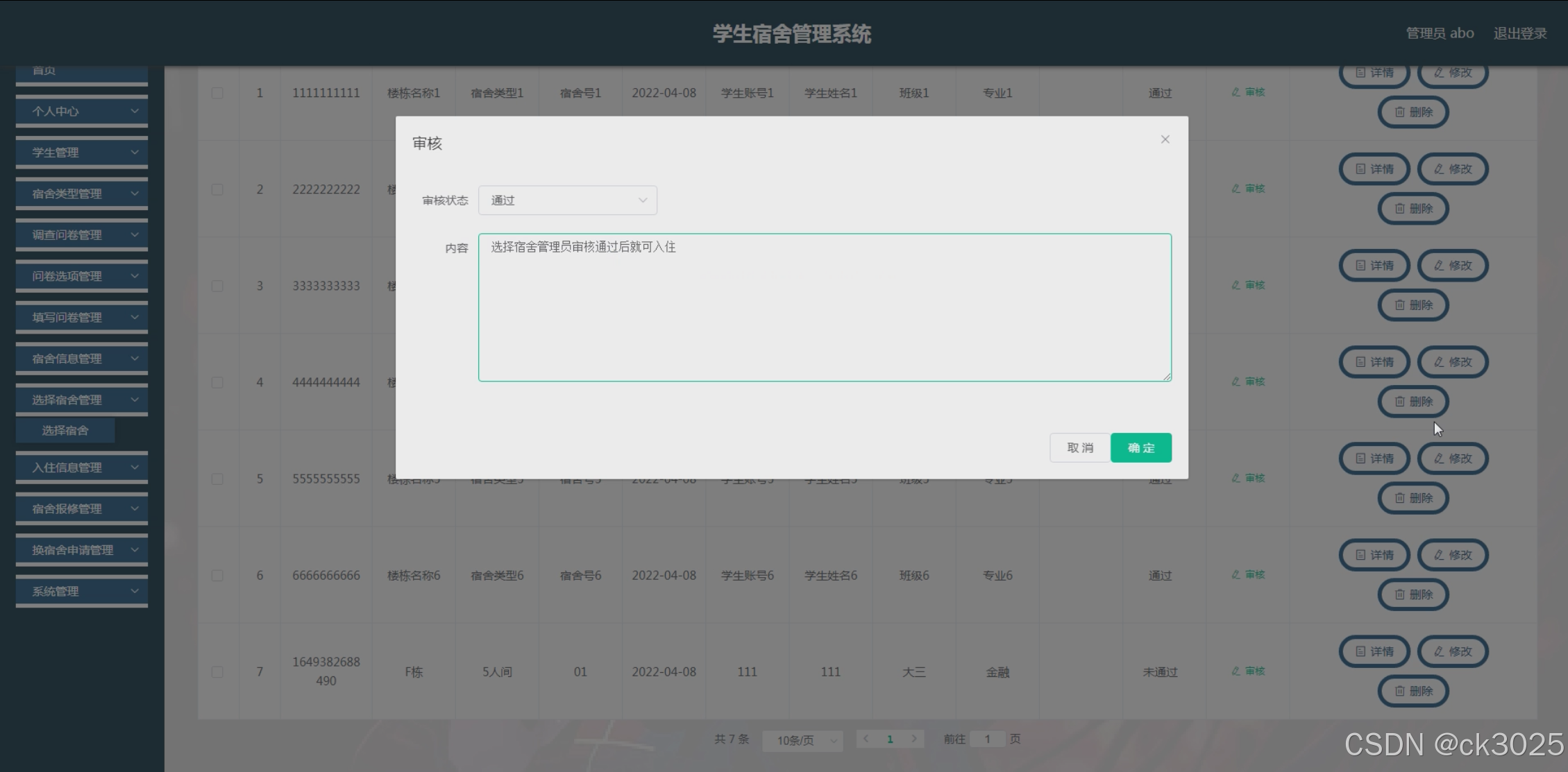 - 申请审批:宿舍管理员接收申请后,根据实际情况进行审批,审批结果通过系统及时通知学生。