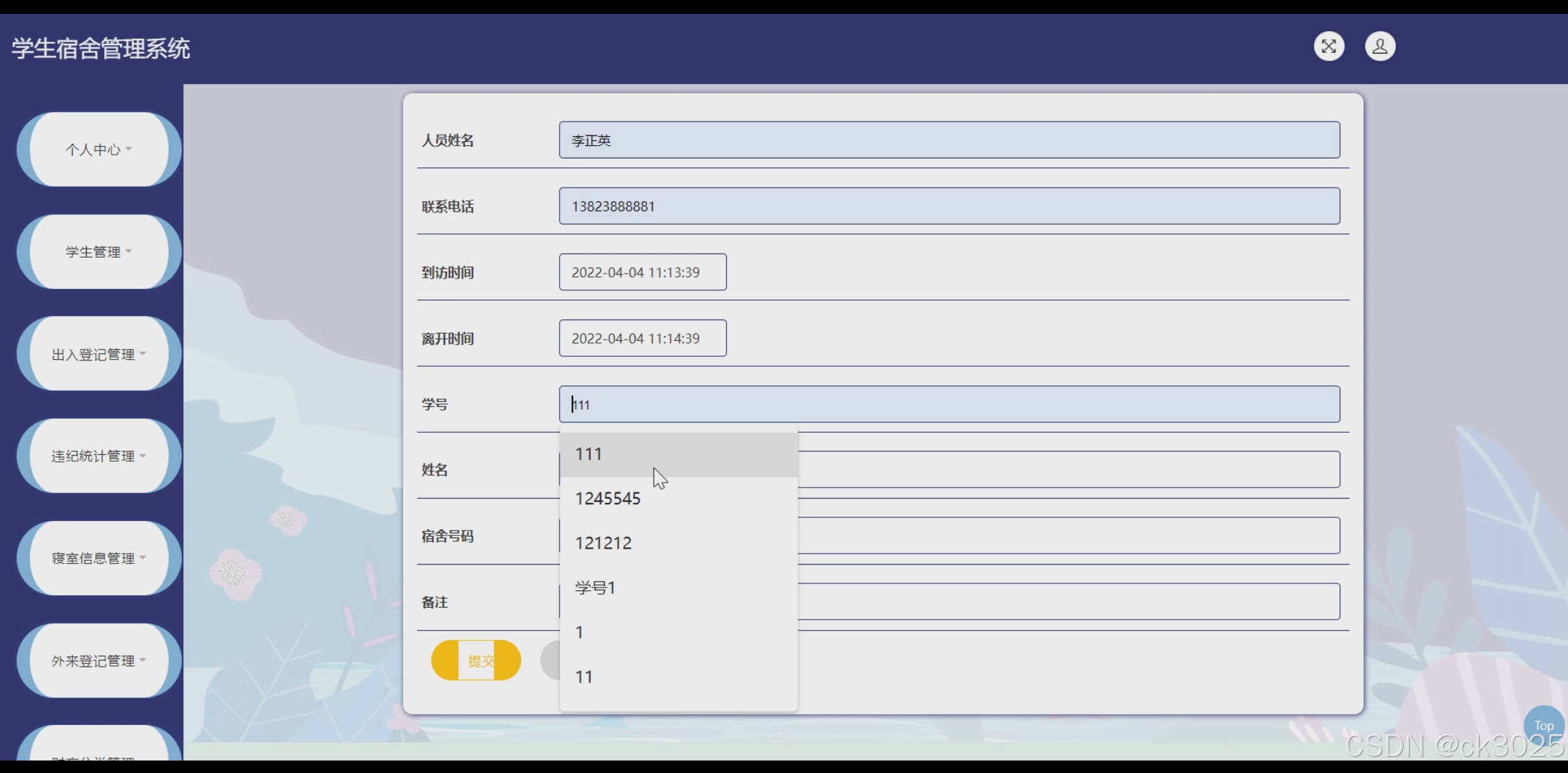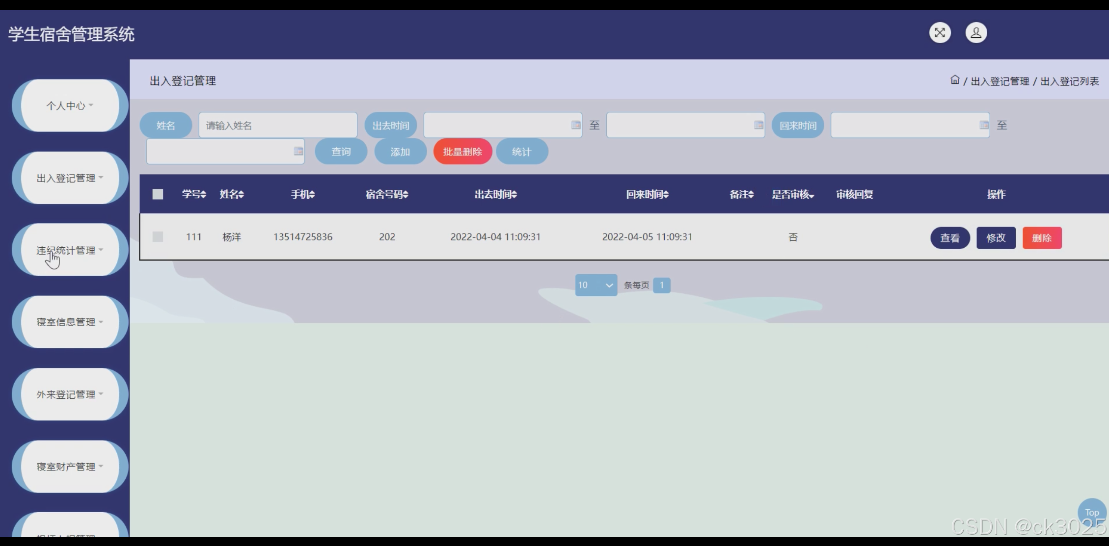 - 实现学生出入宿舍的在线登记功能,记录学生的出入时间、原因等信息,确保学生宿舍的安全。
