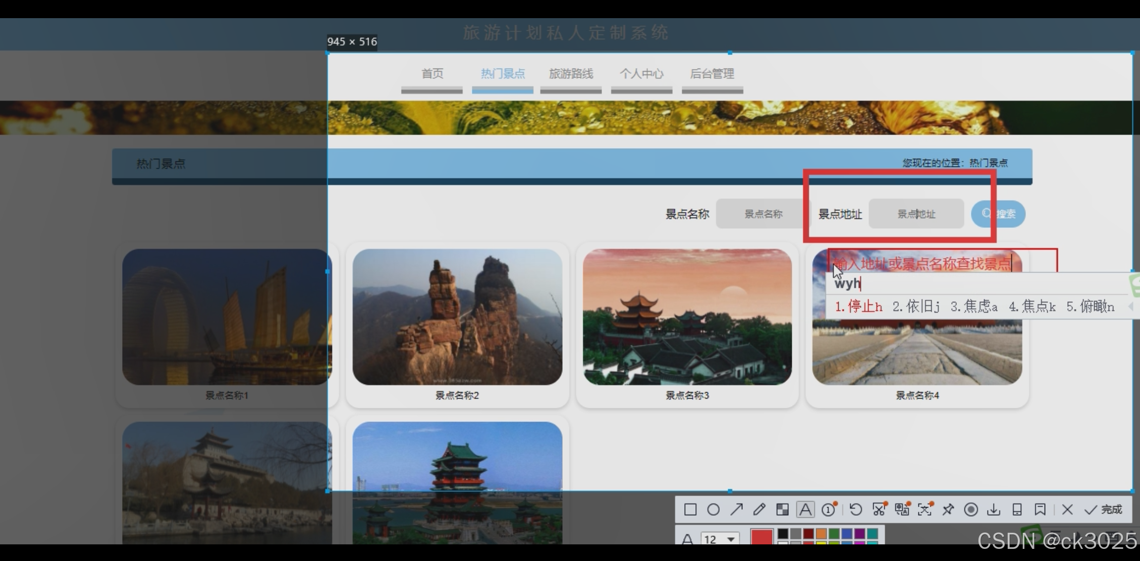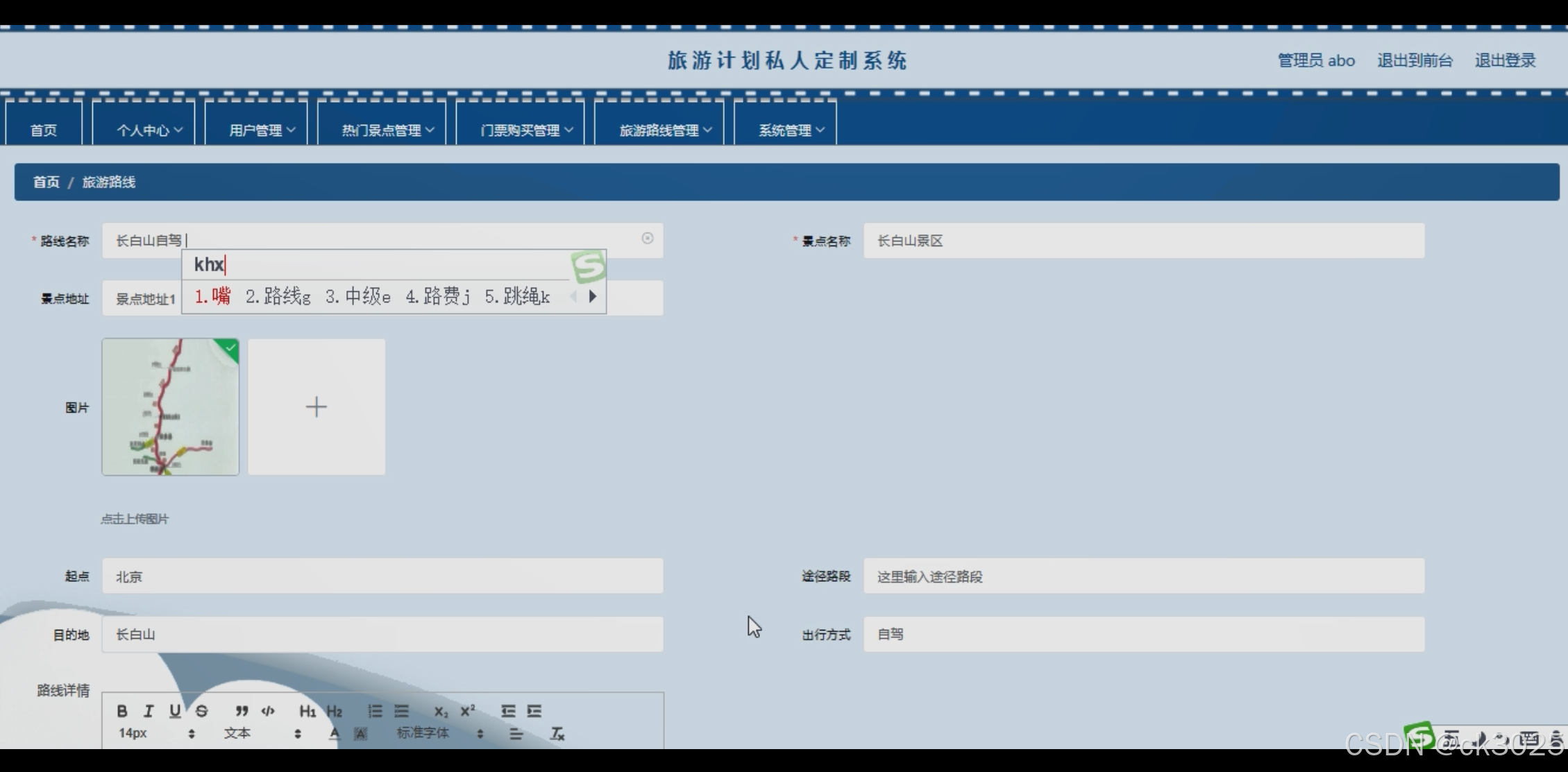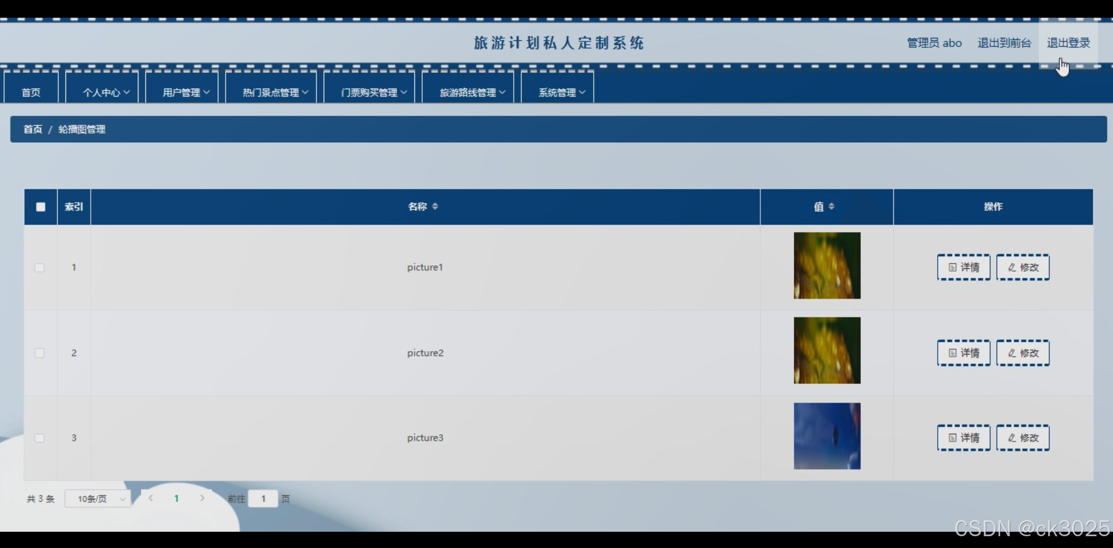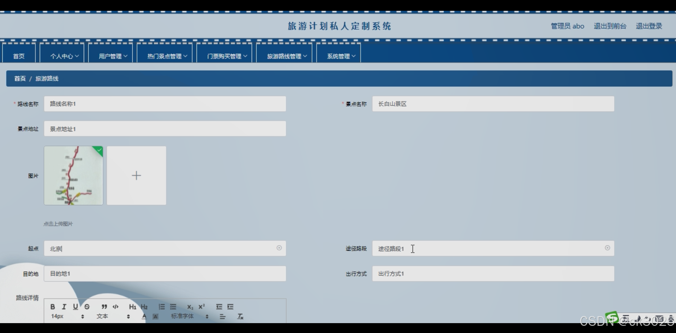 - 成功开发基于 Springboot 的旅游管理系统,实现旅游管理业务高效运行与用户便捷使用,显著提升旅游管理系统的运行效率与服务水平。为用户打造优质的旅游信息获取与订单管理平台,为旅游管理部门与服务提供商创造高效的工作管理工具。