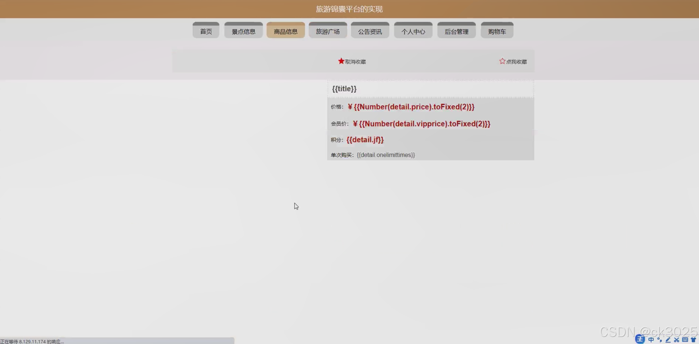 - 前端技术:采用 HTML5、CSS3 结合 JavaScript 进行页面开发,确保平台在不同设备(电脑、平板、手机)上兼容性良好。利用 Vue.js 搭建交互界面,其组件化开发模式使页面结构清晰、易于维护。搭配充满活力、旅游风格的组件库,融入热门旅游目的地图标、自然风光背景、用户信息展示栏等元素,快速构建美观、易用的交互界面,提升用户与景点管理方、供应商的操作体验。运用数据可视化技术,如 Echarts,将景点浏览量统计、商品销售分析等信息以直观图表形式呈现,助力决策制定。