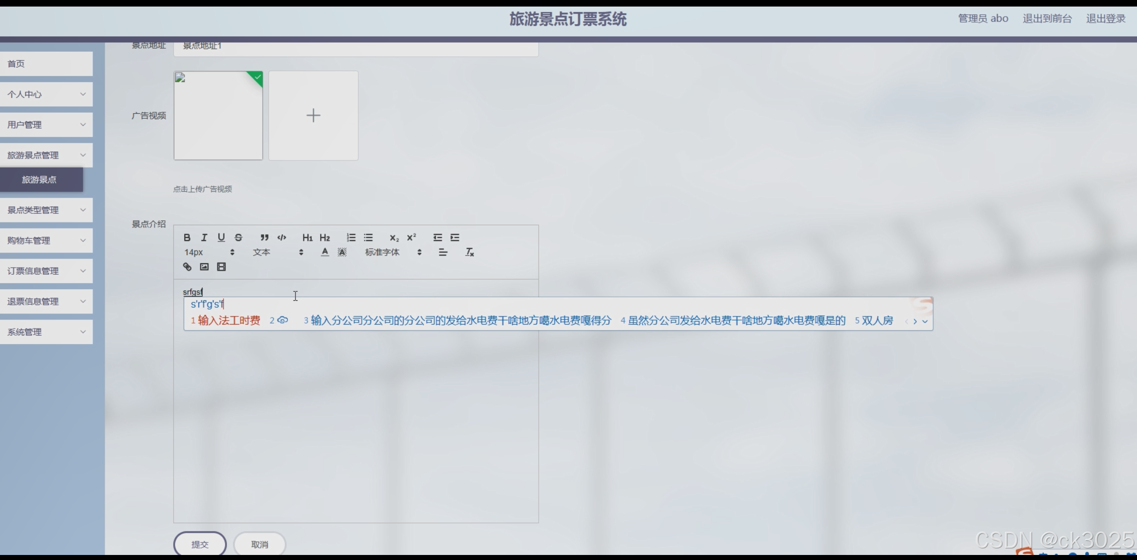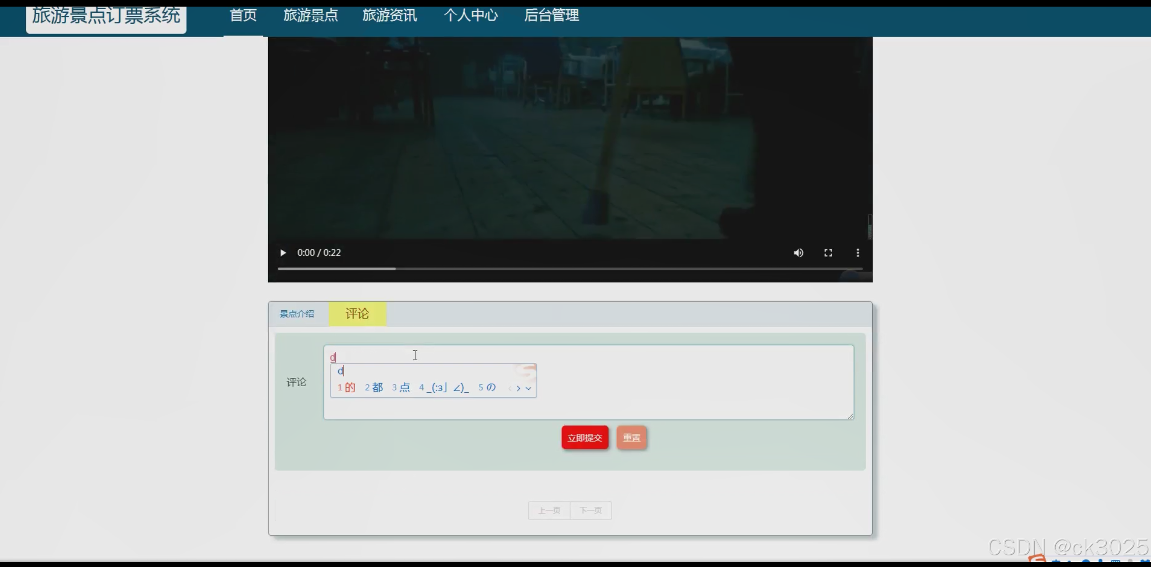 - 成功开发基于 Springboot 的旅游景点订票系统,实现旅游景点订票业务高效运行与用户便捷使用,显著提升旅游景点订票系统的运行效率与服务水平。为用户打造优质的旅游景点订票平台,为旅游景点管理方创造高效的工作管理工具。