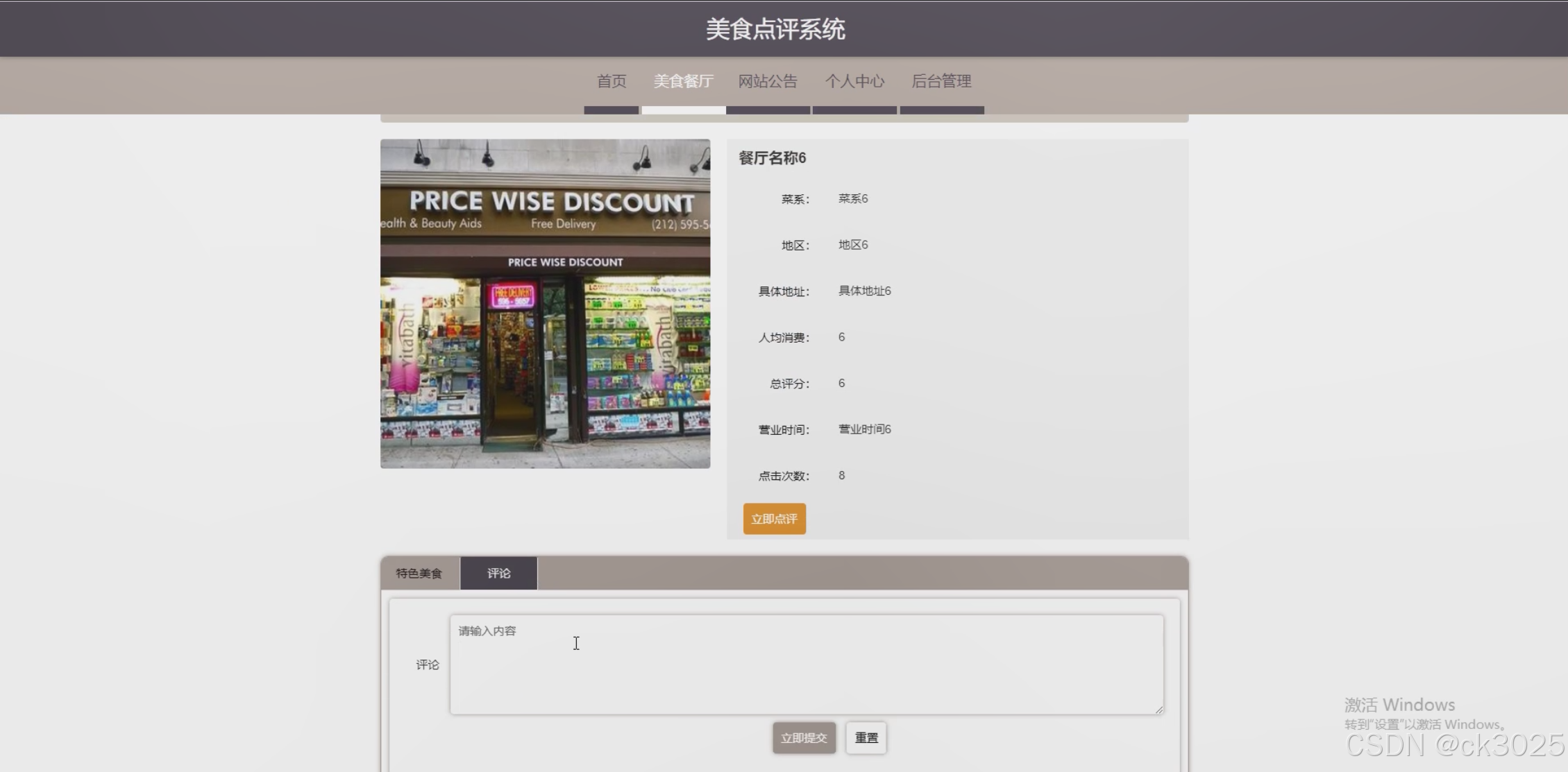 | 用户,美食餐厅,地区,菜系,餐厅,餐厅点评 |
