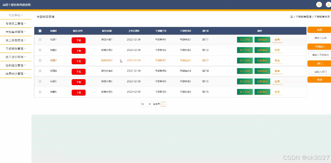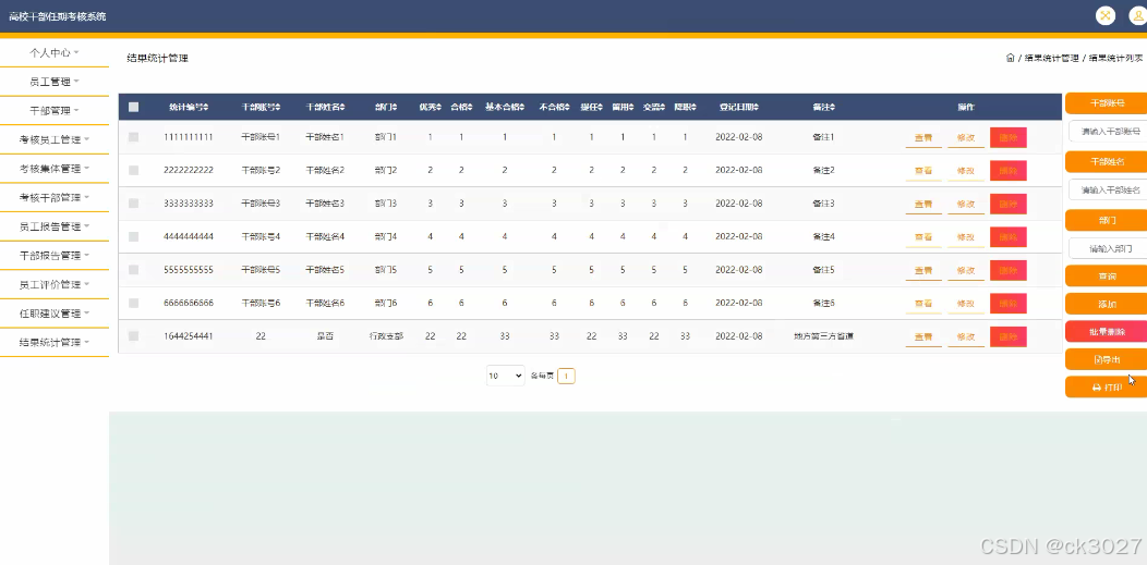 - 结果统计:提供考核结果的数据分析和统计功能,帮助学校管理层全面了解干部和员工的工作表现。