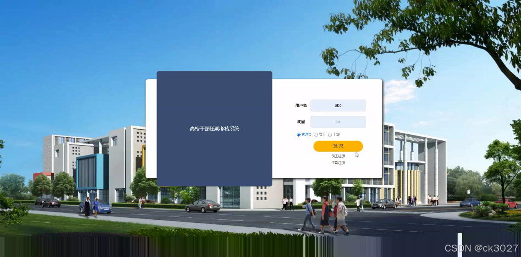 在当前高等教育环境中,高校干部作为学校管理和发展的关键力量,其工作表现和工作能力直接关系到学校的整体运营和教学质量。因此,对干部进行任期考核,不仅是对其工作成果的客观评价,也是激励干部不断提升自我、推动学校发展的重要手段。本研究旨在开发一套基于JSP技术的高校干部任期考核系统KD364,以实现干部考核的信息化、规范化和高效化。