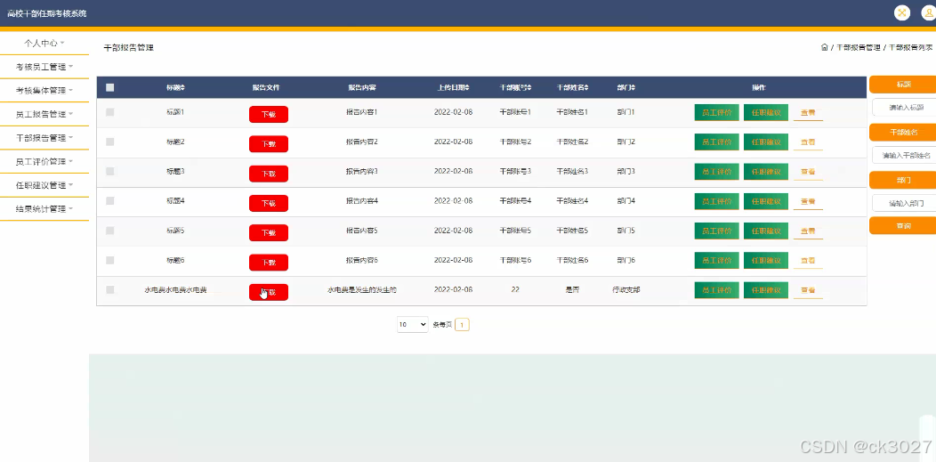 | 干部,员工,考核干部,考核员工,员工评价,任职建议,考核集体,干部报告,结果统计 |