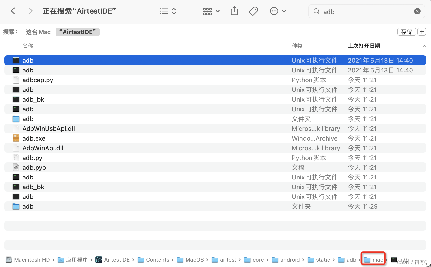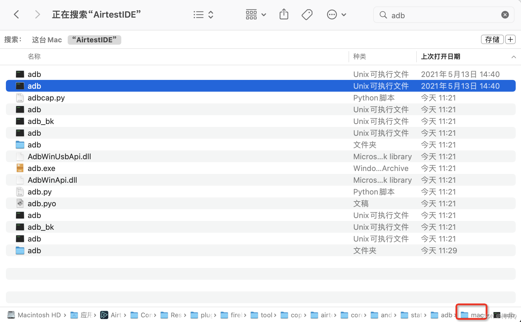 找到这两个路径包含mac的adb文件,给他替换成系统默认的那个就可以了