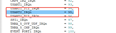 通过这个表查官方库95编号,对应的定义为USART2_IRQn
