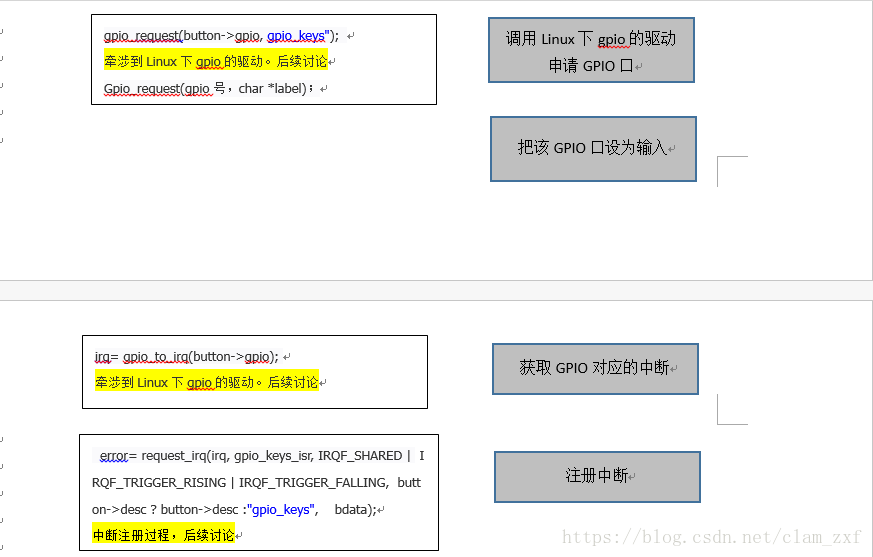 本文主要以分析通用GPIO按键驱动:gpio_keys.C文件为主,将其中牵涉到Linux驱动架构流程,以及架构设计思想进行分析。
