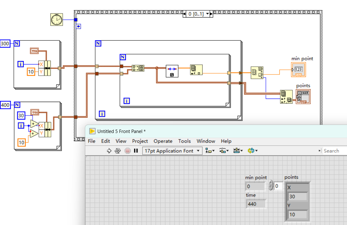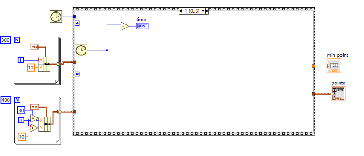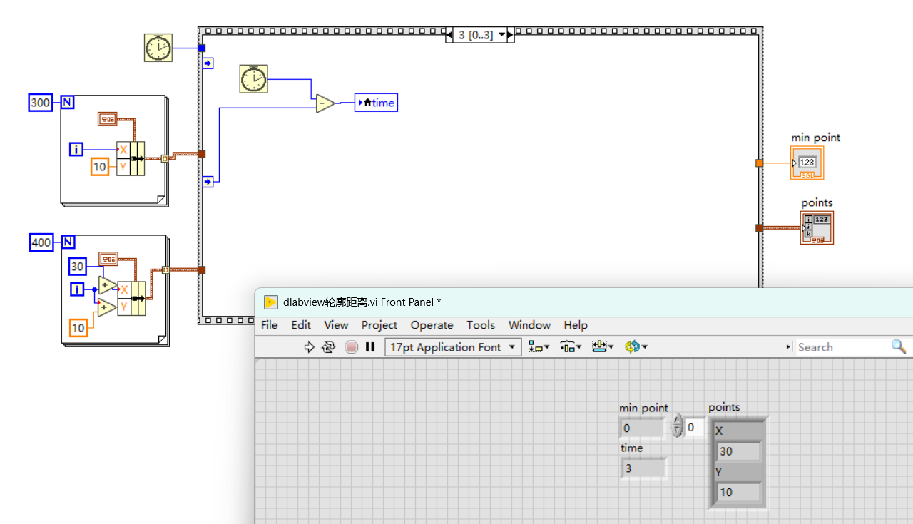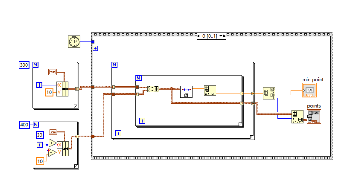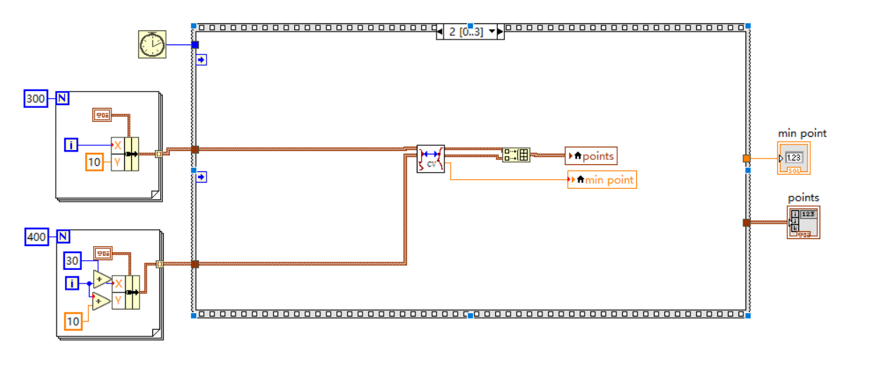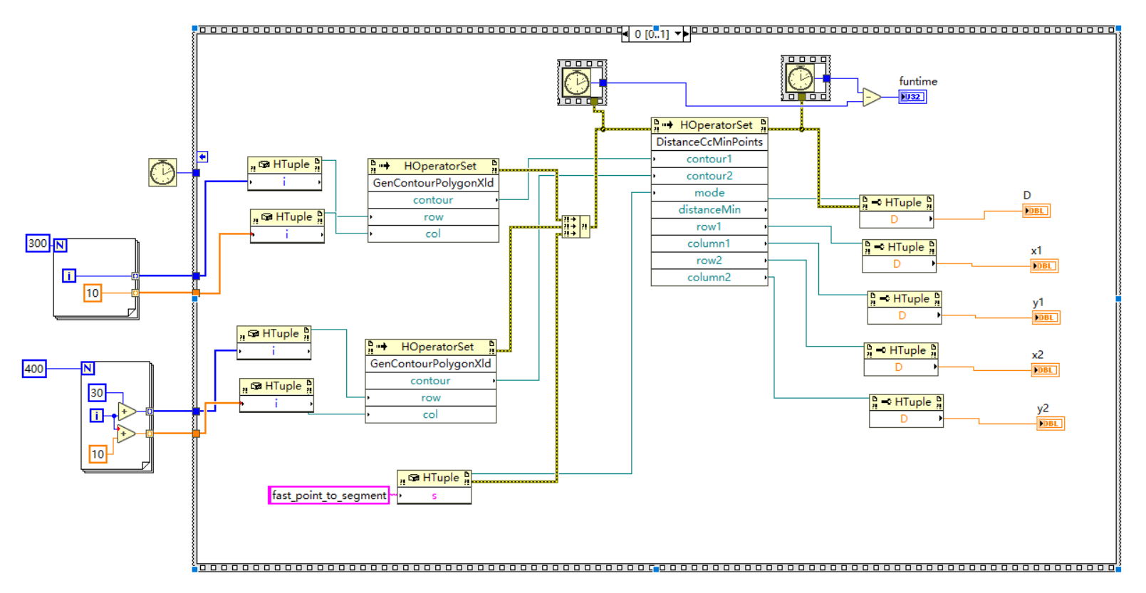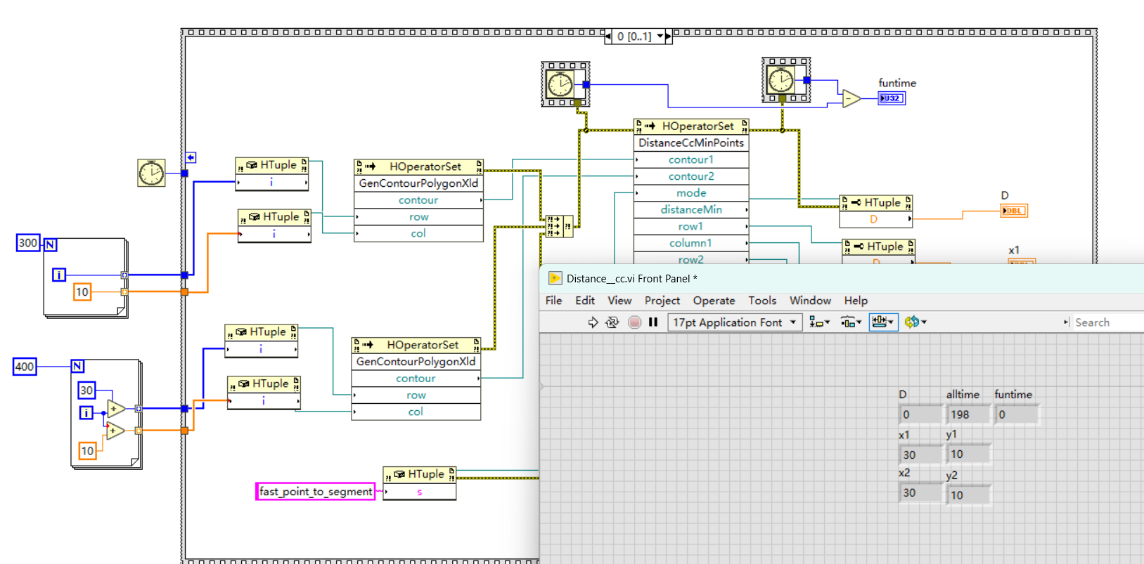 labview中计算两个轮廓点集以常规的两个循环来计算。计算过程以及时间见程序框图。