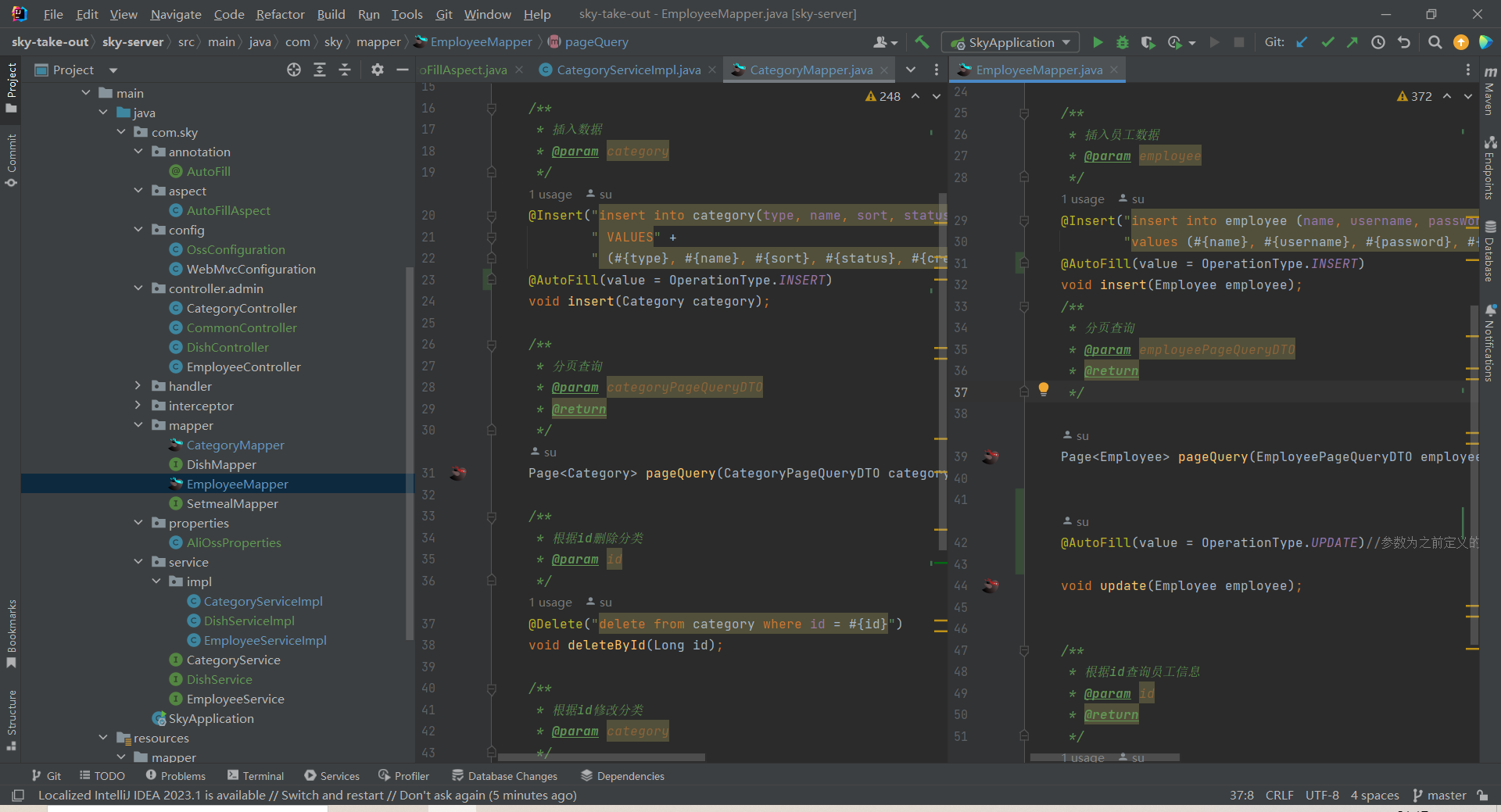 动态sql,采用xml映射的方式,编写的update控制员工的所有属性更新