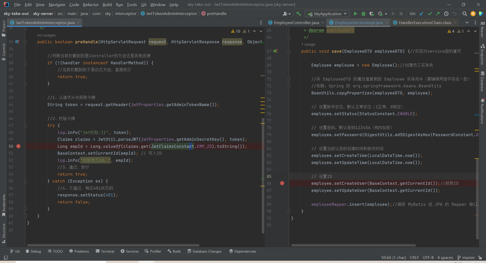 我们需要动态获取当前员工id,因为我们登录时生成了jwt,可解析出jwt中员工id