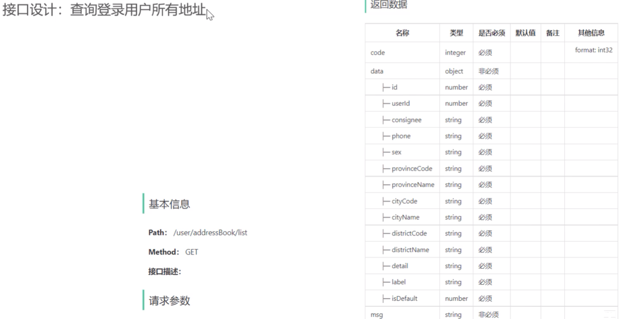 @ApiOperation("查询当前登录用户的所有地址信息")