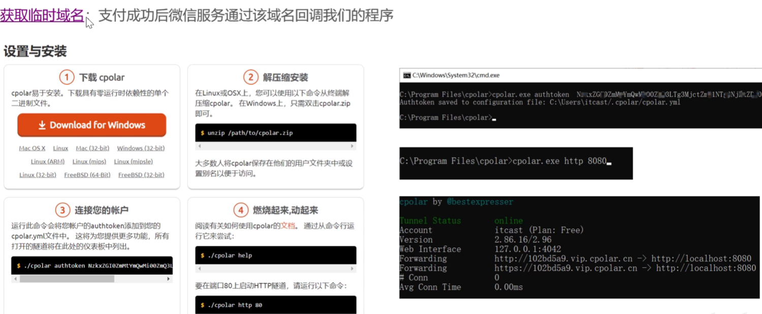 2、微信后台如何调用到商户系统-内网穿透,给服务端一个随机的公网ip