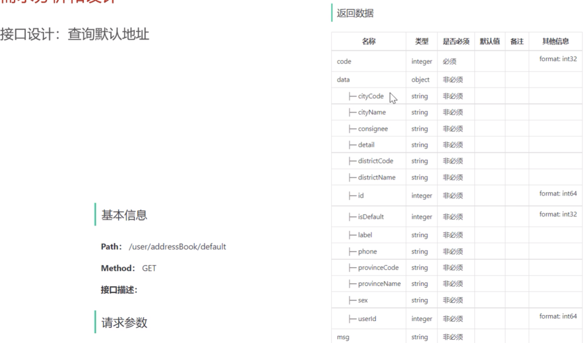 查询默认地址接口,是应用在用户下单的界面,默认显示 默认地址