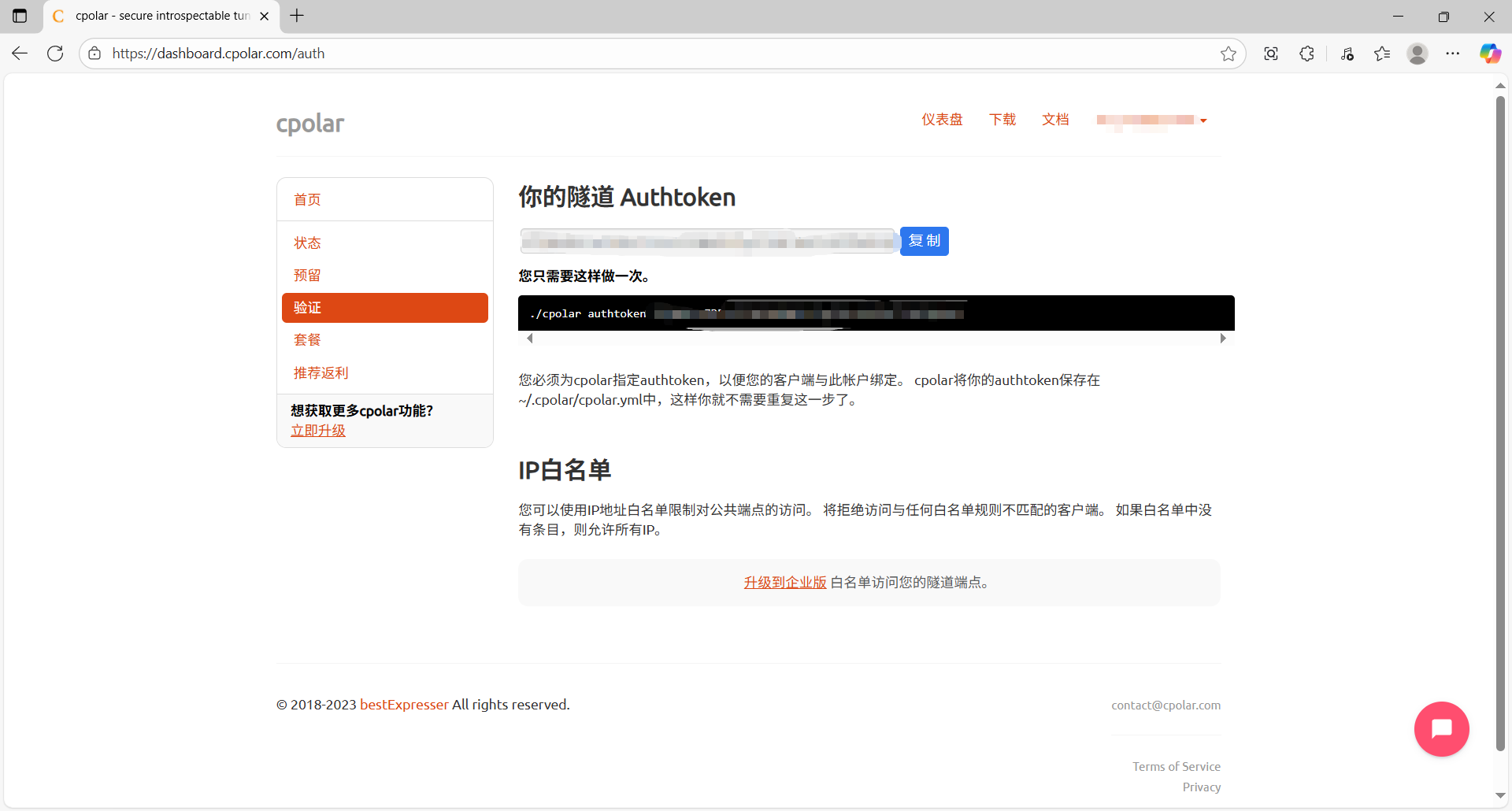 使用内网穿透工具,获取Authtoken,并执行命令开启服务