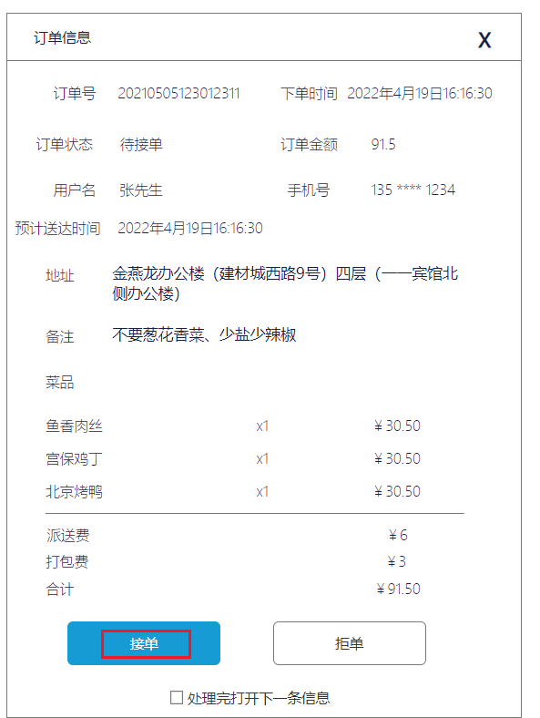 - 商家接单其实就是将订单的状态修改为“已接单”