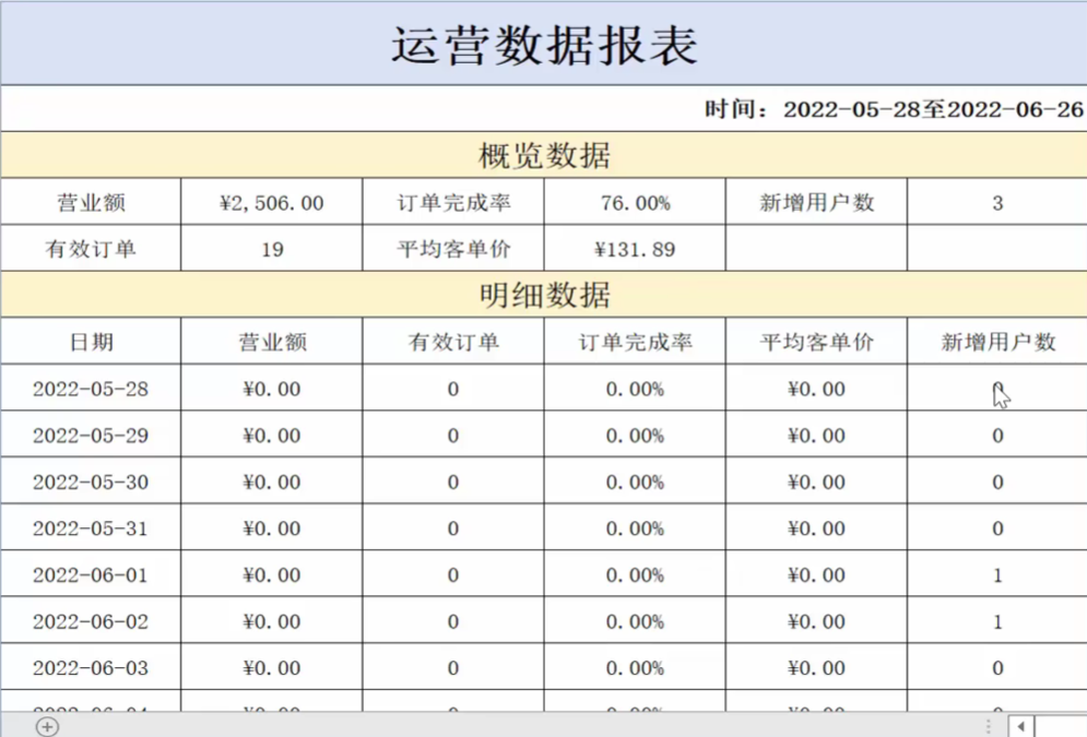 导出运营数据Excel报表