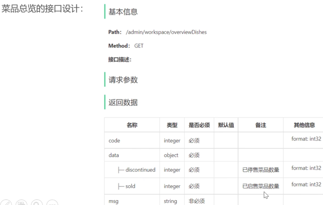 @ApiOperation("查询菜品总览")