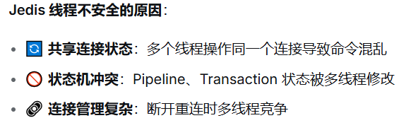 为什么jedis线程不安全:多个线程操作同一个连接(一个jedis对象)导致命令混乱