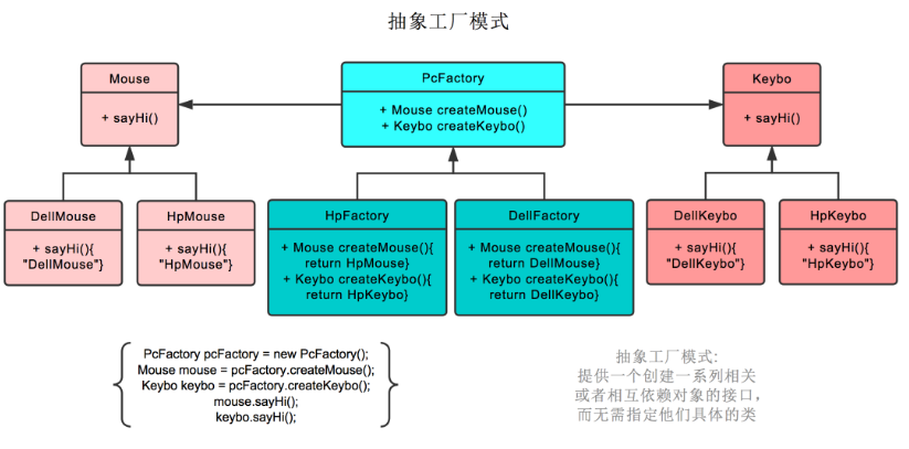 下面通过一个简单的示例来说明抽象工厂模式的底层原理和实际应用。