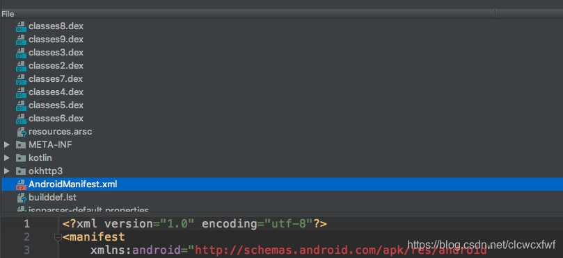 搜索apk文件里的AndroidManife文件