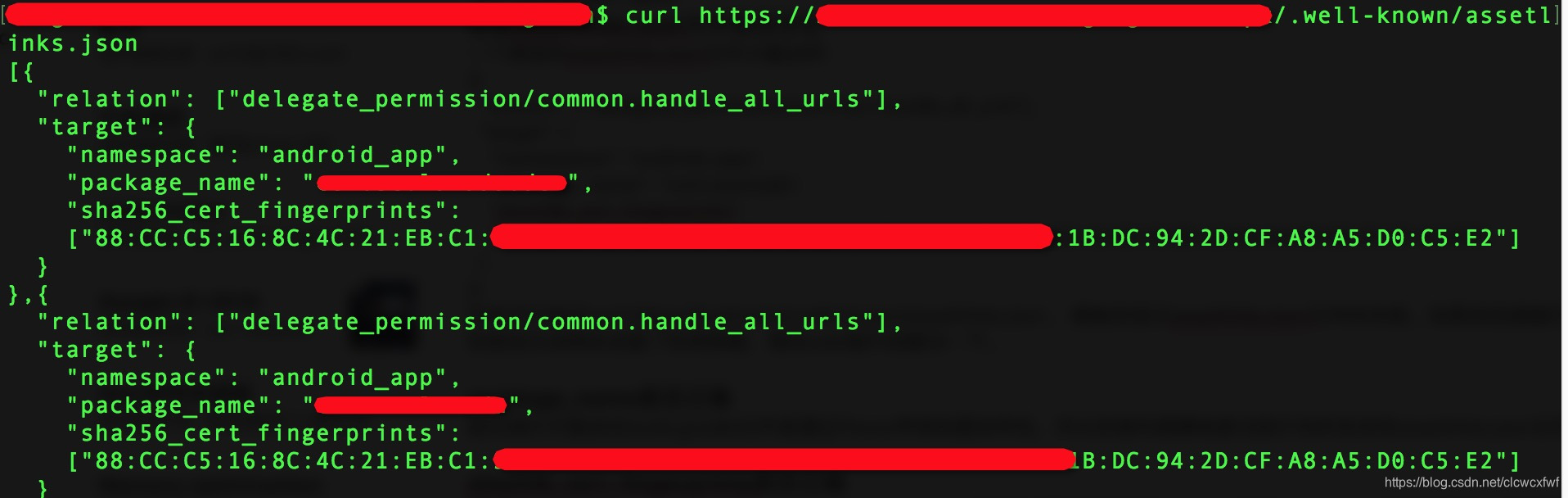 在命令行执行curl https://hostname/.well-known/assetlinks.json ,看能否显示assetlinks.json文件的内容。如果浏览器能打开,curl命令不行,则是因为该网站设置了防爬策略,不让机器人访问,需找web端开发解决一下。