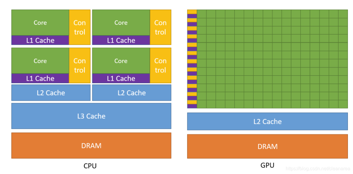 GPU更多强调的是改善系统吞吐,不提供复杂的逻辑控制,故其集成了更多的计算单元,同时支撑的指令的类型和数量较少