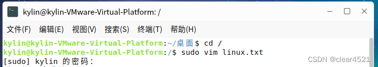 # sudo touch linux.txt 新建一个txt文件