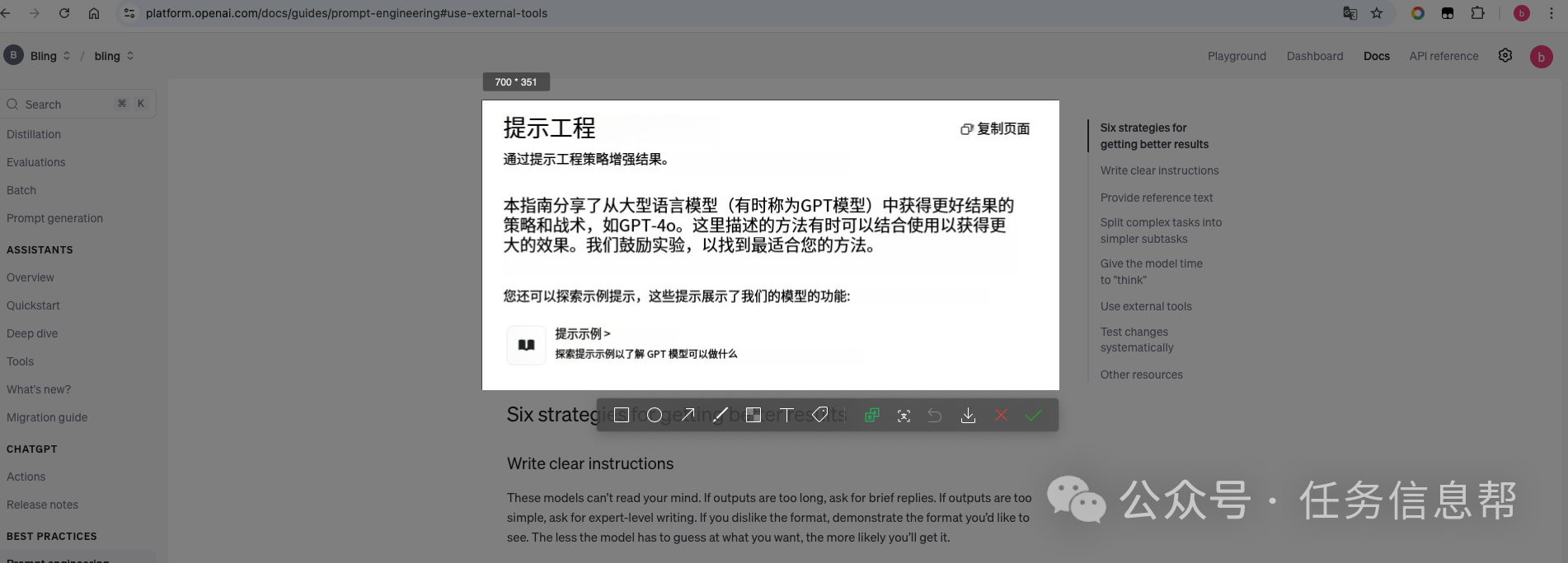Prompt:引导 AI 模型生成特定输出的输入格式,Prompt 的设计和措辞会显著影响模型的响应,讲点人话就是:你和AI对话的内容。 Prompt在最初只是简单的内容的问答,随着模型不断的完整和发展OpenAI总结了6种比较好的策略,被称之为Prompt engineering分别是: