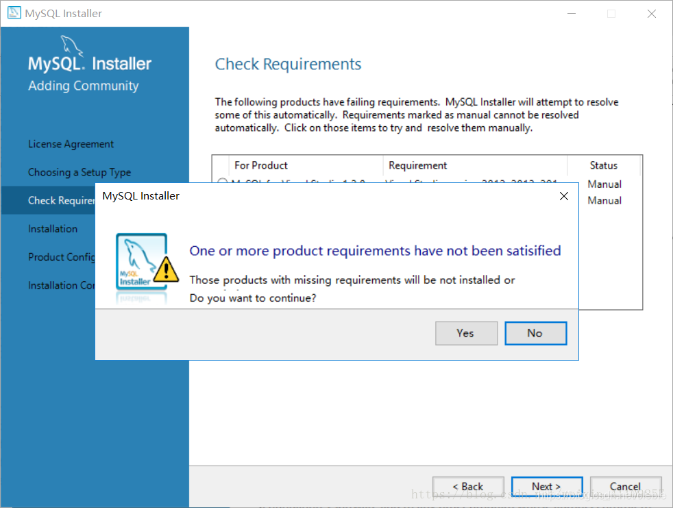 2. Check Requirements页面的弹出选择“Yes”。