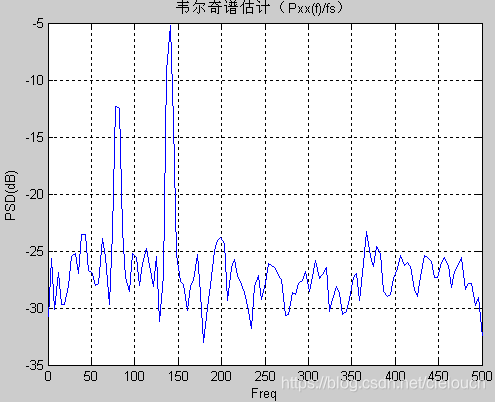 title(‘韦尔奇估计谱(Pxx(f)/fs)');