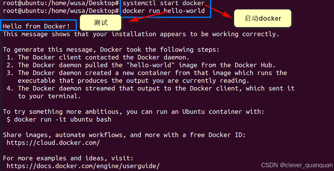 3.docker守护进程基于该镜像创建了一个新容器,该容器运行可执行文件并输出当前正在阅读的消息