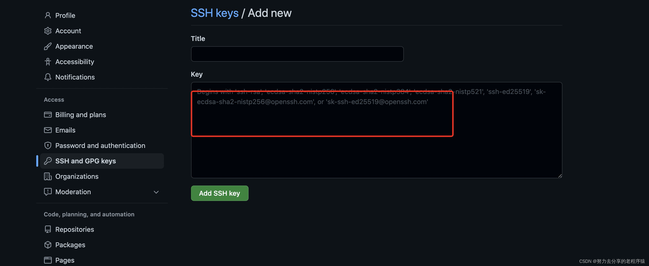 2、Copy id_rsa.pub 里面ssh-rsa 开头的文件copy到github 的proflie里面,见截图