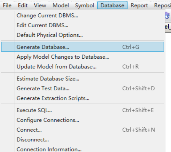 2. 执行“生成数据库”(Forward Engineering / Generate Database)