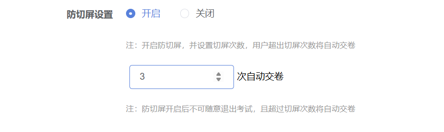 此外,该功能还支持防作弊设置,线上考试时可开启摄切屏检测,确保考试的公平性