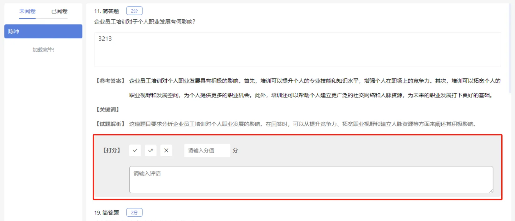 考后阅卷是企业考试管理的一大难题,尤其是涉及大量主观题时,多个阅卷人评分标准不一,容易引发争议。职星学院的考试管理功能实现了阅卷自动化与标准化:客观题由系统自动评分,秒出结果;主观题支持在线阅卷,