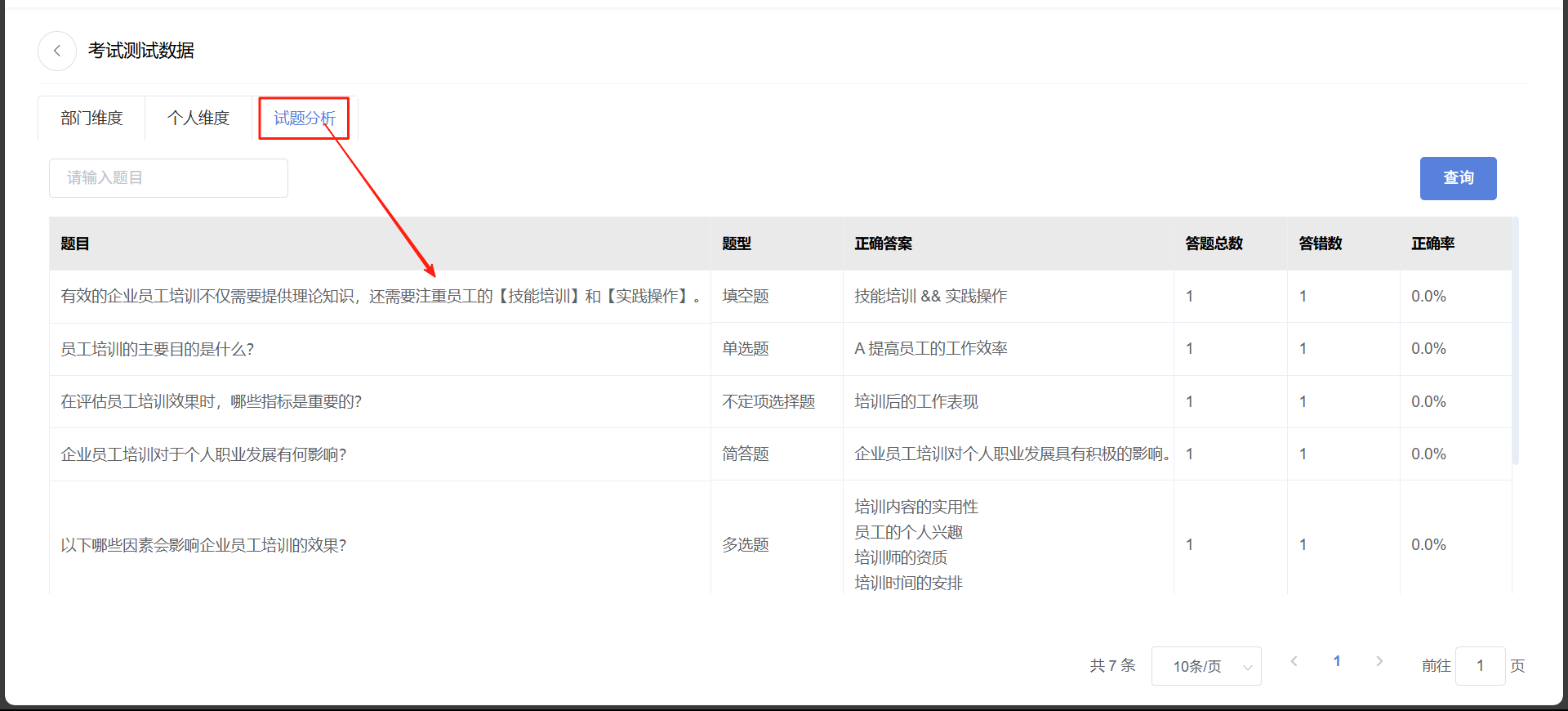 考试结束后,仅知道员工分数远远不够,企业更需要了解 “哪些知识点是共性薄弱环节”等信息。职星学院的考试管理功能会自动生成多维度数据分析报告